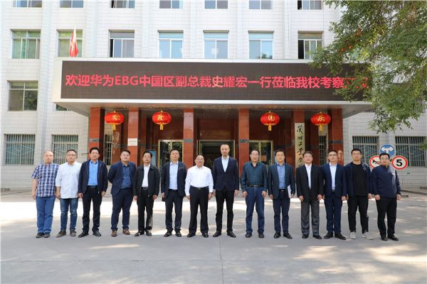 9月29日下午,华为技术有限公司EBG中国区副总裁史耀宏、EBG甘肃区域总经理李轶伟、EBG甘肃区域副总经理张旭等一行来我校考察交流。党委书记俞子泓、党委副书记黄荟铭、副校长李贵山出席座谈会,就进一步深化人才培养、校企合作、智慧校园建设等专题进行了深入交流。