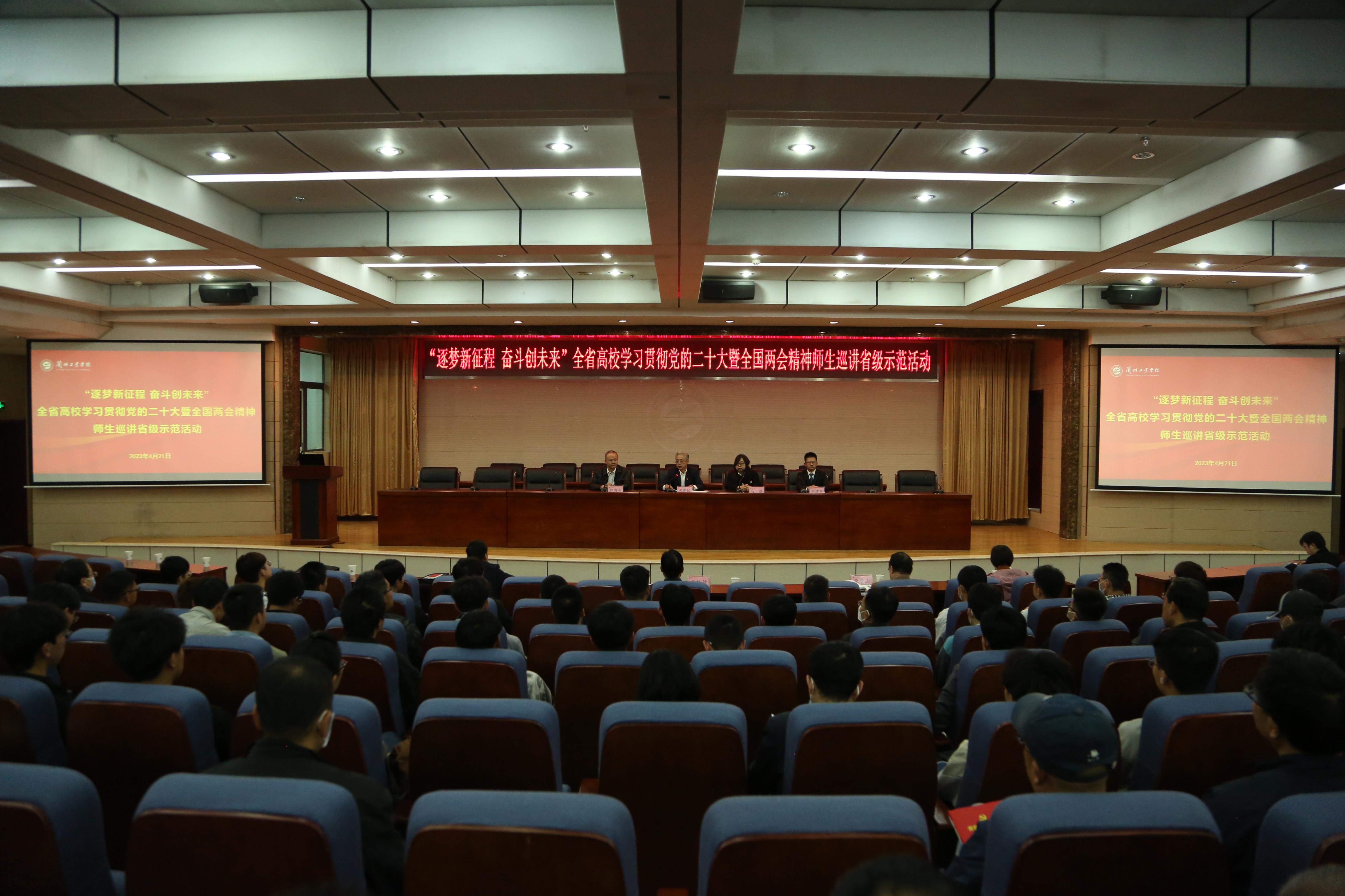 根据省委宣传部和省委教育工委有关要求,4月21日上午,全省高校第二巡讲团组长、西北民族大学马克思主义学院副教授马静,全省高校第二巡讲团组员、西北民族大学马克思主义学院讲师郭海奇、马克思主义学院研究生刘建军来我校宣讲。党委副书记黄荟铭主持宣讲。学校在家校领导和师生代表300余人聆听了宣讲。