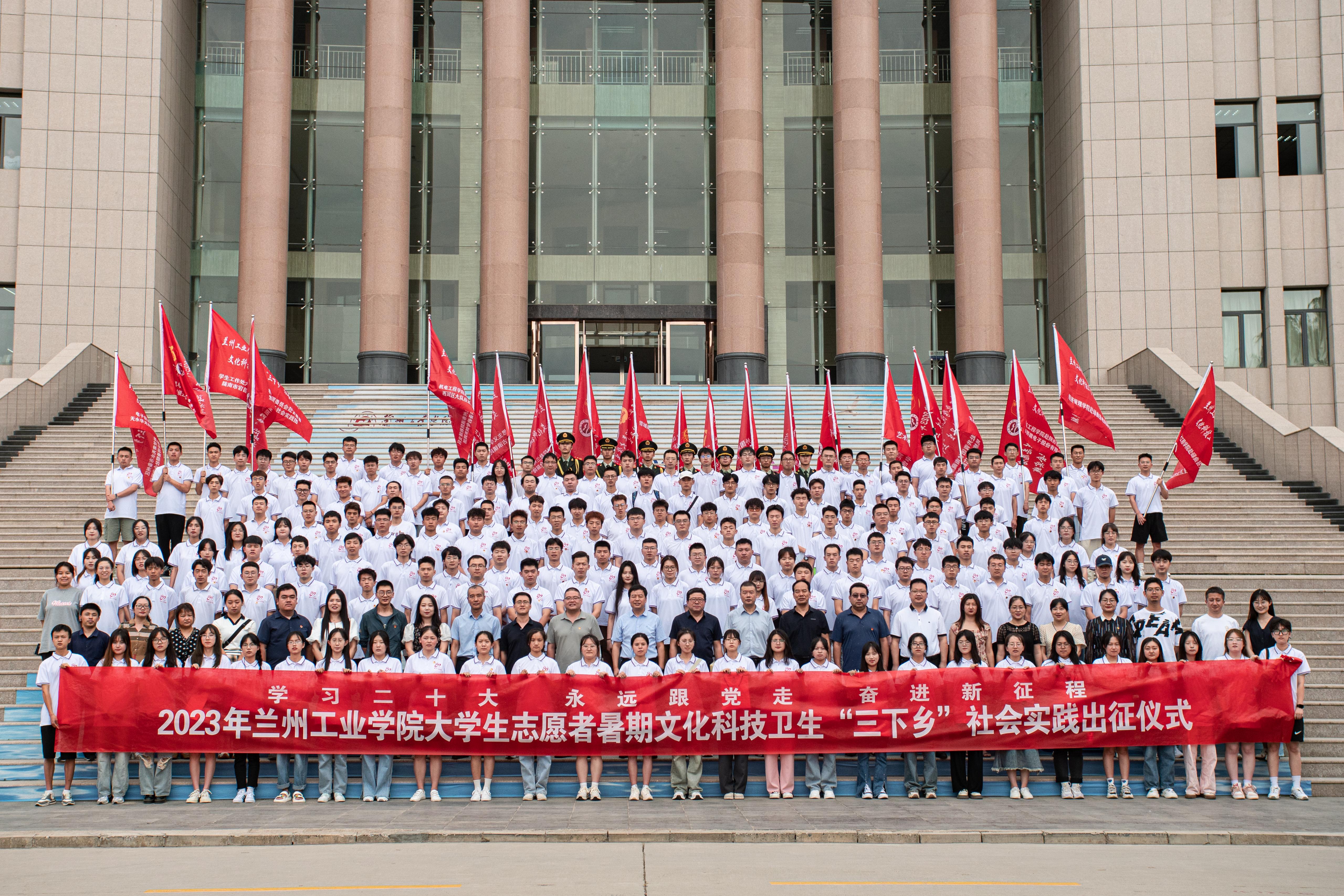 7月11日,学校在第三学术报告厅举行“学习二十大 永远跟党走 奋进新征程”2023年大学生志愿者暑期文化科技卫生“三下乡”社会实践出征仪式。副校长王佰成出席仪式并讲话。党委学工部、教务处、科技处、创新创业学院、校团委等相关部门负责人,各学院党委(党总支)书记、副书记、团委书记以及全体社会实践指导教师、队员共计400余人参加了出征仪式。