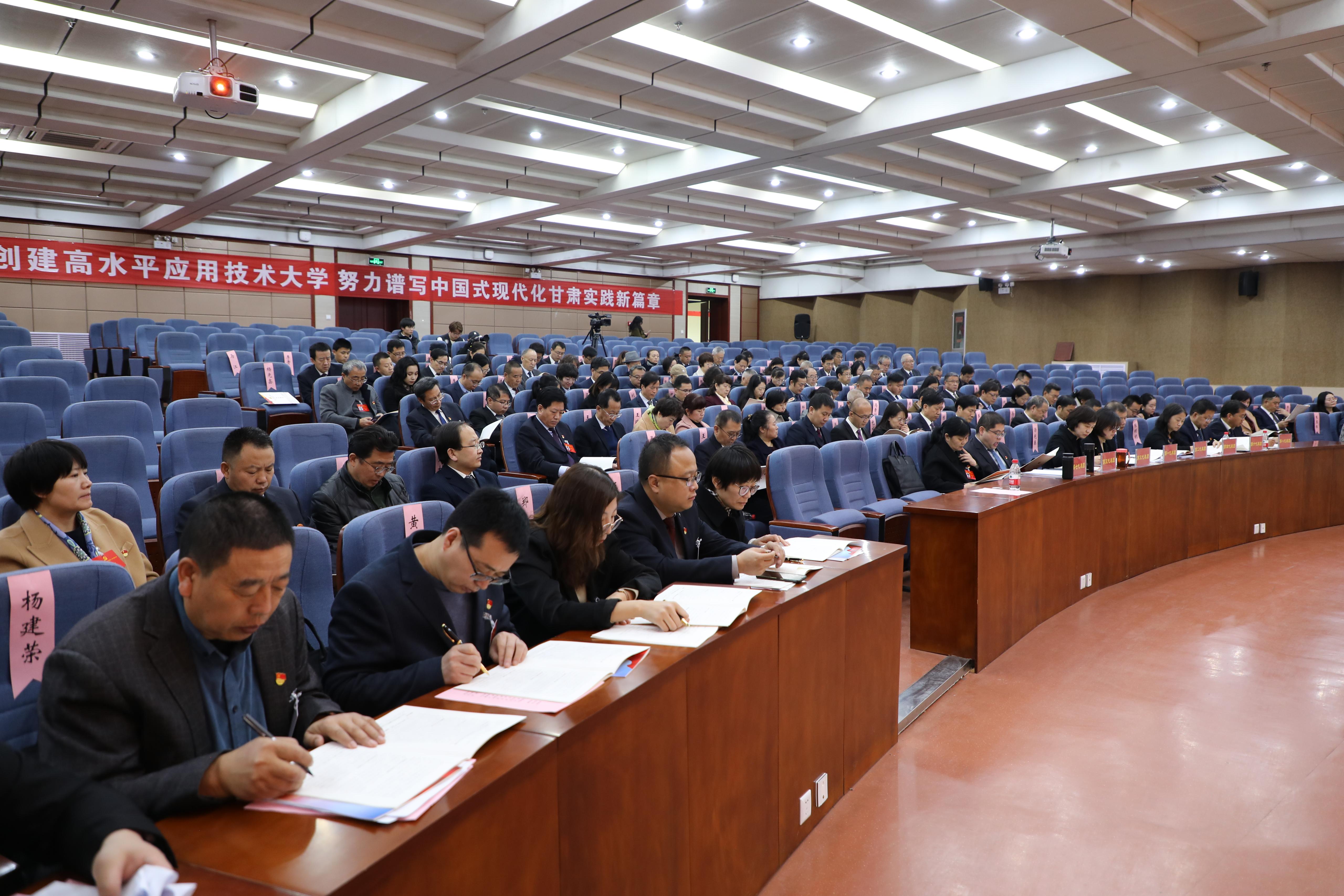 本次大会是在全国上下认真学习贯彻落实党的二十大精神、不断巩固拓展学习贯彻习近平新时代中国特色社会主义思想主题教育成果之际,学校进入高质量发展新阶段,全校师生员工凝心聚力全面建设高水平应用技术大学的关键时期召开的一次十分重要的会议。大会的主题是:以习近平新时代中国特色社会主义思想为指导,认真学习贯彻党的二十大精神,全面贯彻党的教育方针,落实立德树人根本任务,传承红色基因,厚植办学基础,深耕内涵发展,团结动员全体党员干部和师生员工踔厉奋发、勇毅前行,谱写建设特色鲜明、优势突出、区域内有重要影响的高水平应用技术大学新篇章。
