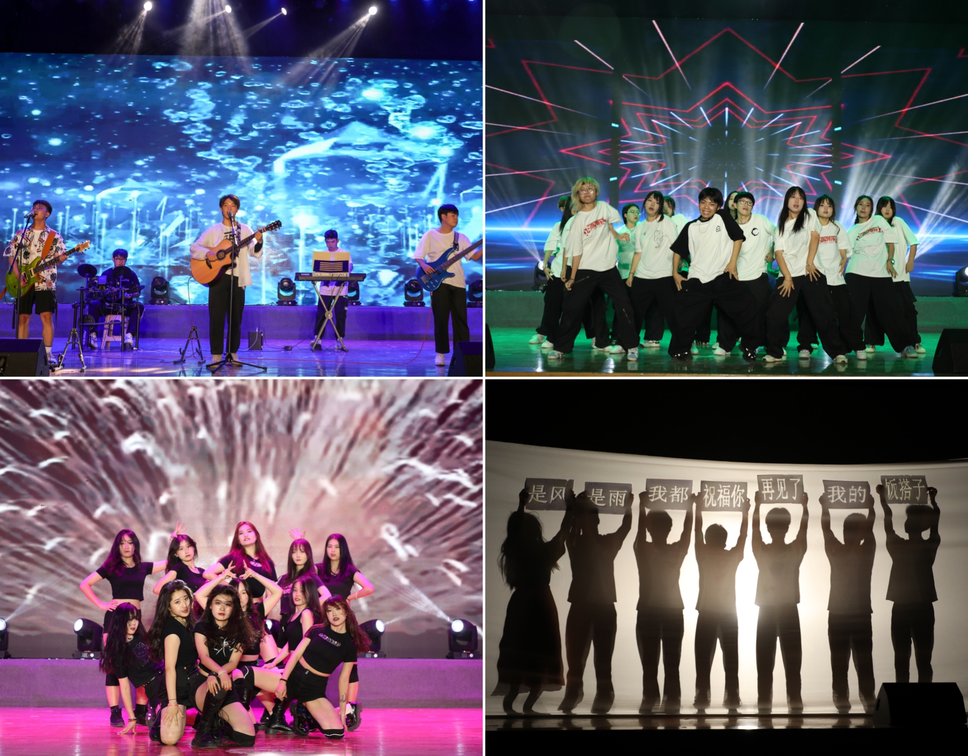15日晚,学校“青春见证·梦想启航”欢送2023届毕业生晚会在乐队演奏《蓝莲花》中拉开帷幕。副校长王佰成,党委统战部、学工部、科技处、校团委相关负责同志与近3千名师生共同观看演出。演出以独唱、合唱、舞蹈、相声、情景朗诵等形式进行,表达了学校对毕业生的浓浓情意和衷心祝愿。舞蹈《时刻准备着》《金陵十三钗》,情景朗诵《八步沙》,歌伴舞《锦绣前程》,弘扬以爱国主义为核心的时代精神,用艺术呈现当代大学生铭记历史、讴歌时代楷模,砥砺奋进新征程的青春姿态。爵士舞《嗨,青春》《HOPE BOY》、街舞《TALK DIRTY》、拉丁舞《以青春为名》、现代舞《Thunderrous》以节奏韵律之美展现当年青年奋发向上,追赶梦想之姿。合唱《夜空中最亮的星》《如愿》,原创歌曲《青春见证》用婉转动听的音律献礼2023届毕业生。情景朗诵《我见过你》、情景舞蹈《四年乐园》、生动再现了多姿多彩的校园生活,表达了毕业生对学校的依依不舍之情。整场晚会用光影、音乐、声音记录了2023届毕业生美好难忘的大学生活,体现了老师和同学们对毕业生的殷切期望和祝福。
