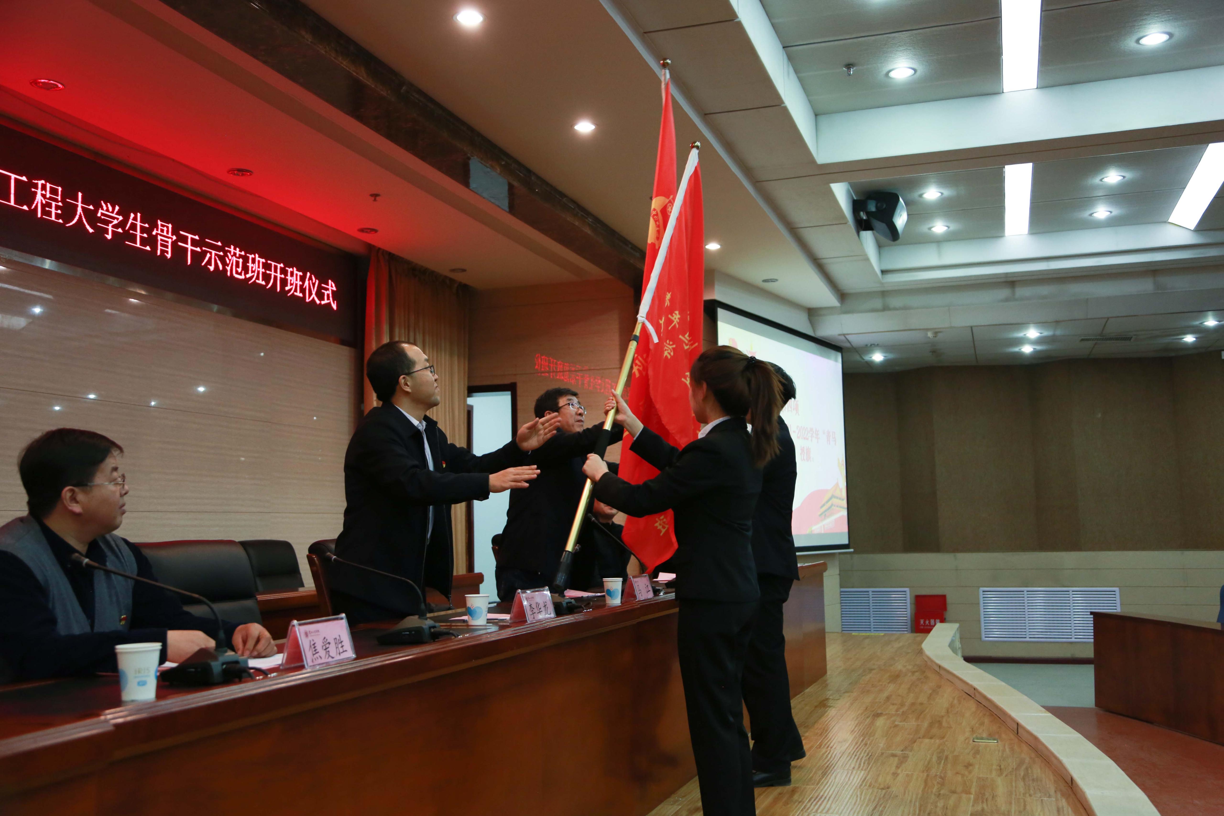 开班仪式上,与会领导宣读了《关于举办2021-2022学年兰州工业学院青年马克思主义者培养工程大学生骨干示范班的通知》《关于成立兰州工业学院青年马克思主义者培养工程宣讲团的通知》,为上年度“青马班”优秀学员代表颁发荣誉证书和结业证书。李华龙和马江分别为2021—2022学年“青马班”、“青马宣讲团”授旗,省“青马班”学员、校级“青马宣讲团”成员代表郝佳莉作表态发言。