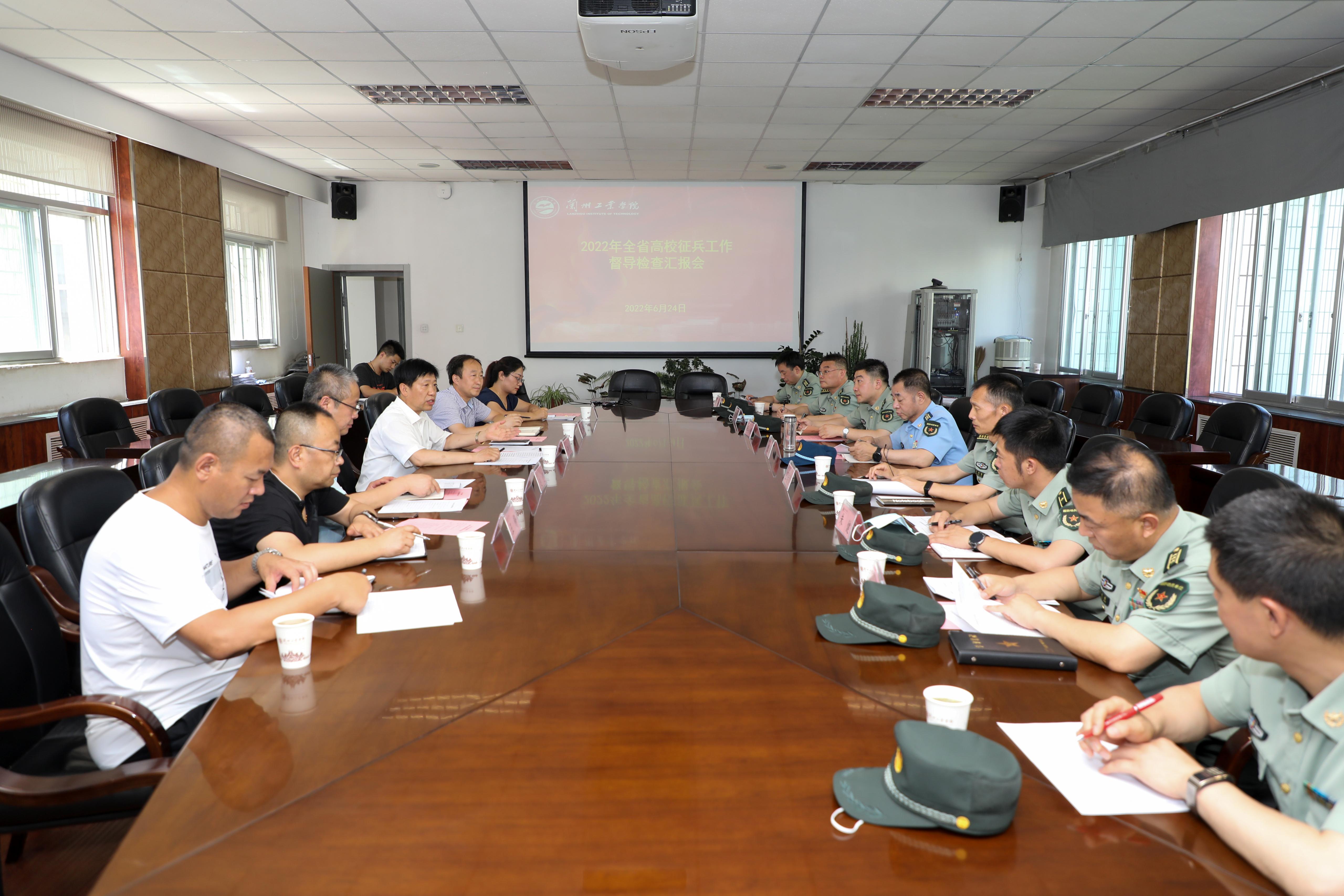 6月24日下午,全省高校征兵工作督导检查组莅临我校检查指导征兵工作。学校在第二会议室召开汇报会,党委委员、副校长马铁信主持会议并讲话。