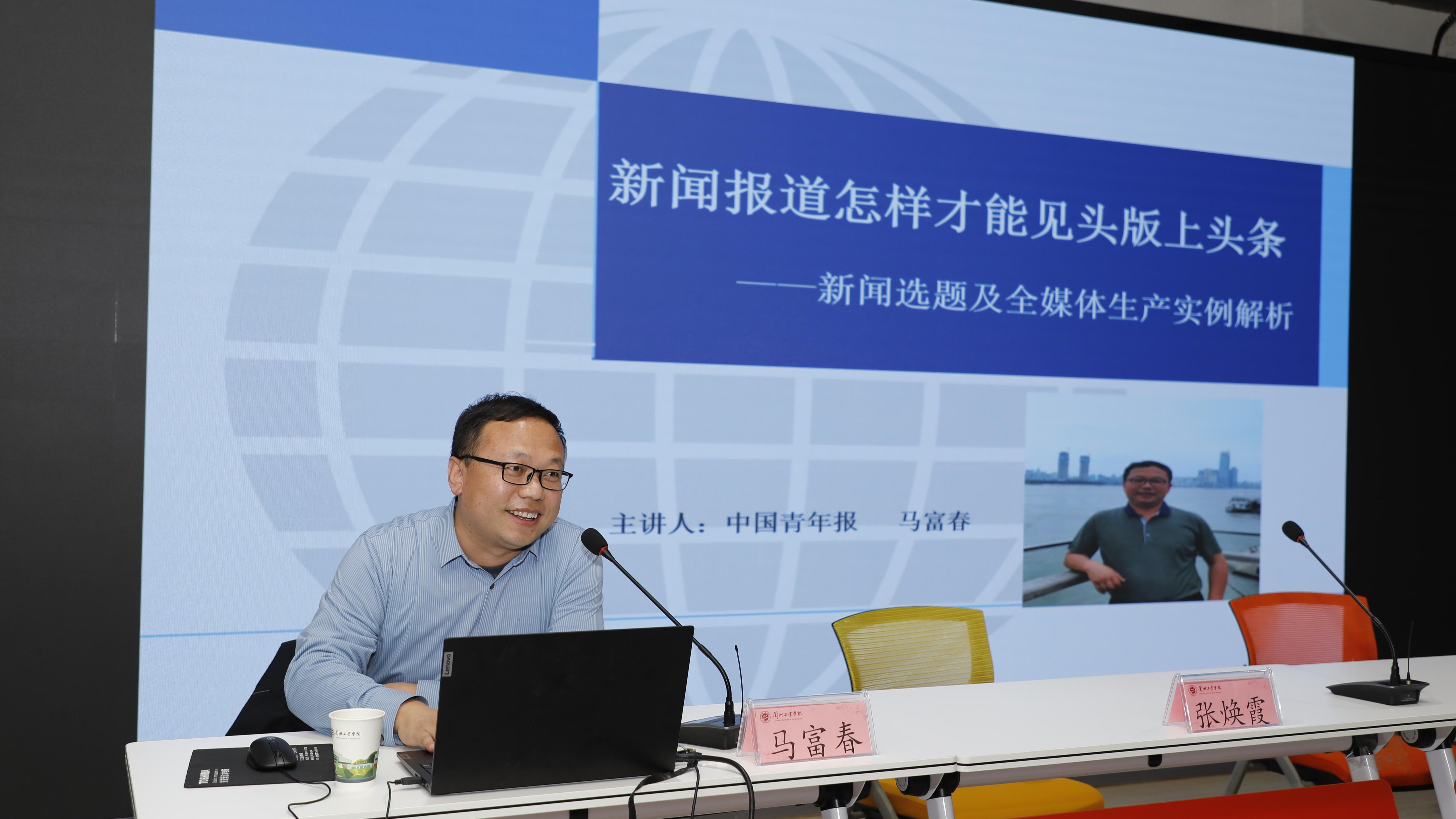 马富春围绕什么是新闻、如何发现新闻、新闻选题的关键及核心、新闻价值及现实意义等内容,通过中国青年报典型报道案例,深刻阐述了新闻的选题和价值,重点讲授了“新闻报道如何见头版上头条”的操作路径。报告深入浅出,既有理论阐释,又有丰富案例,具有很强的指导性,为学校新闻宣传工作提供了很好的思路和办法。