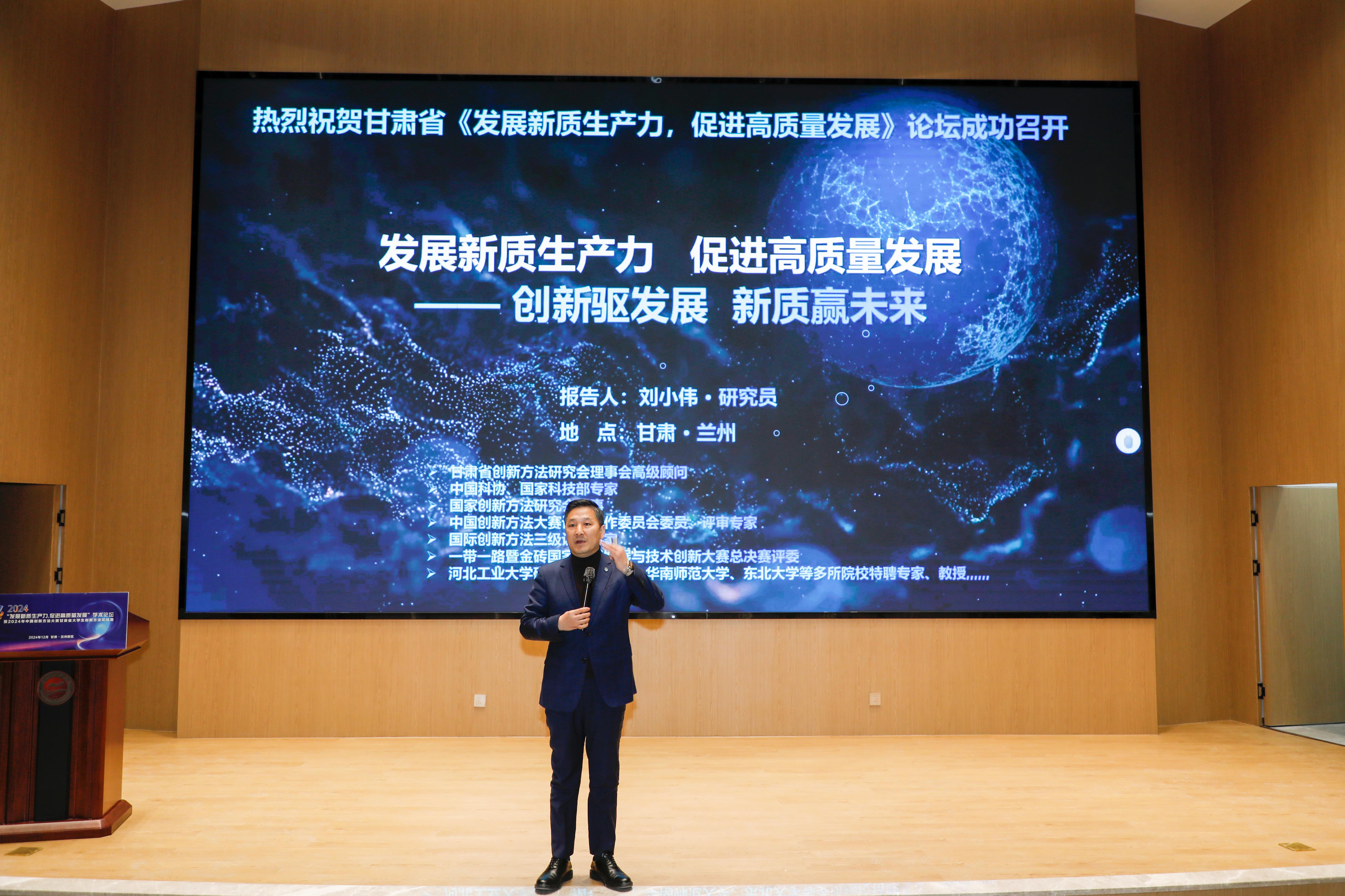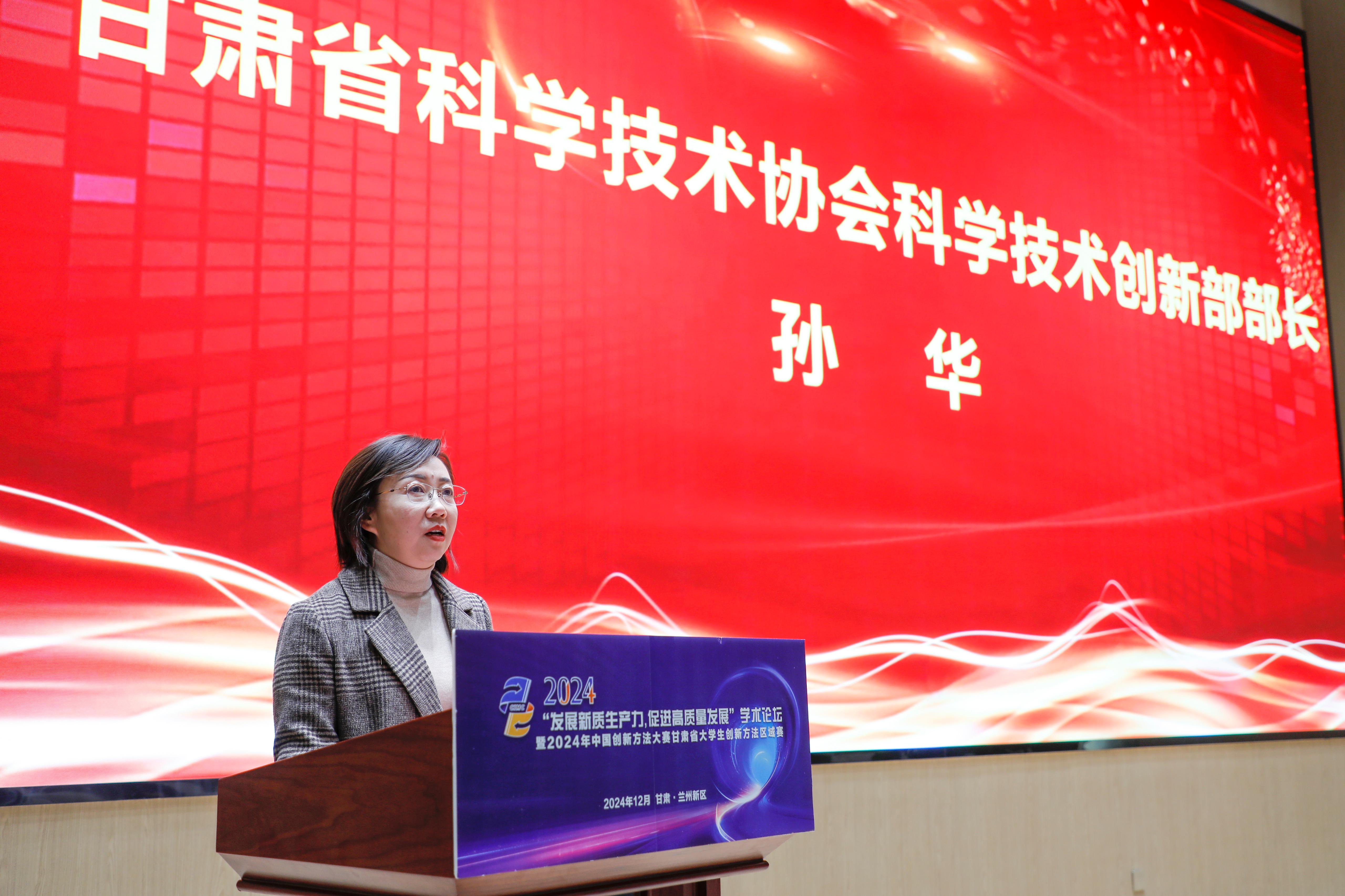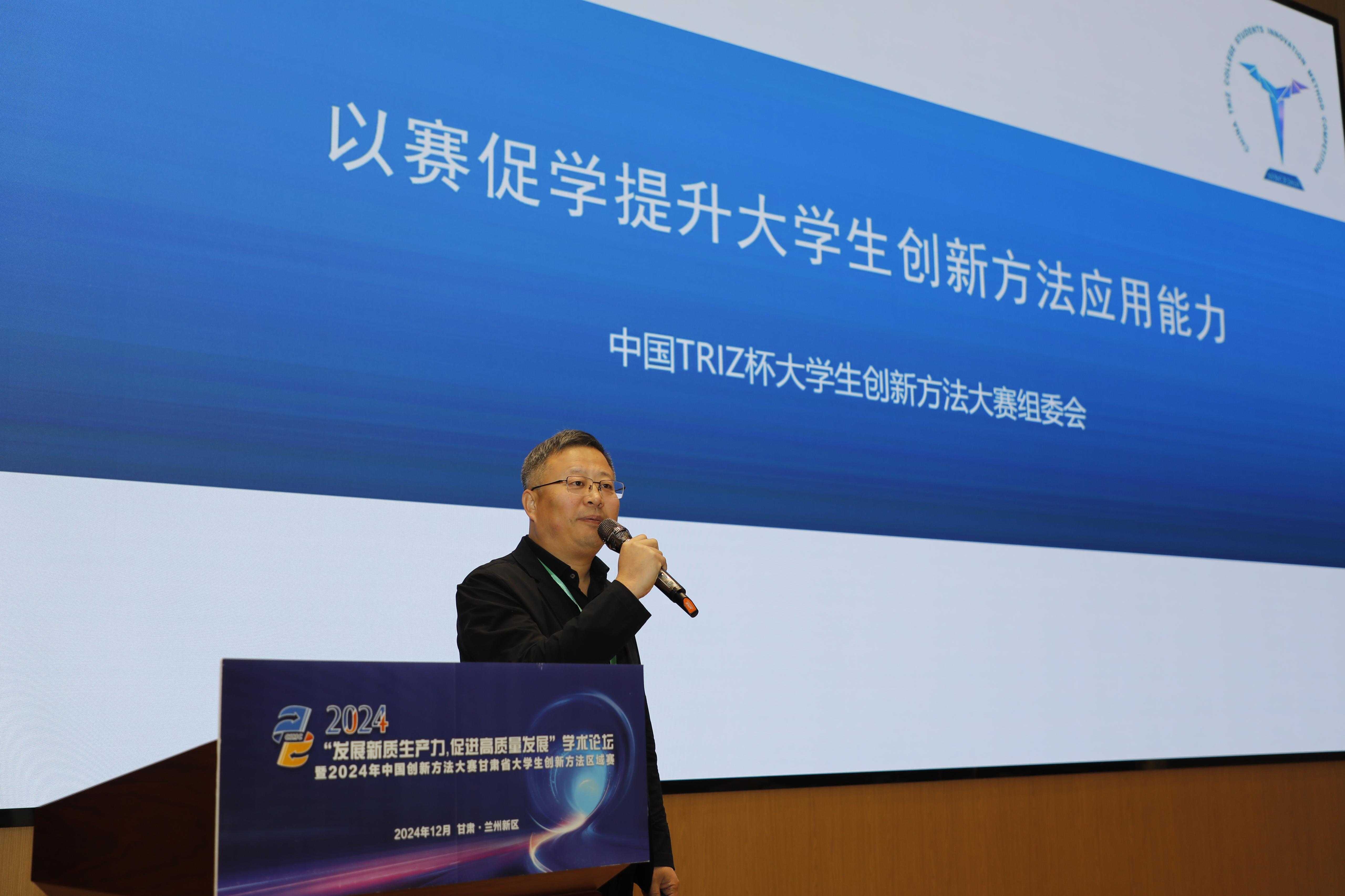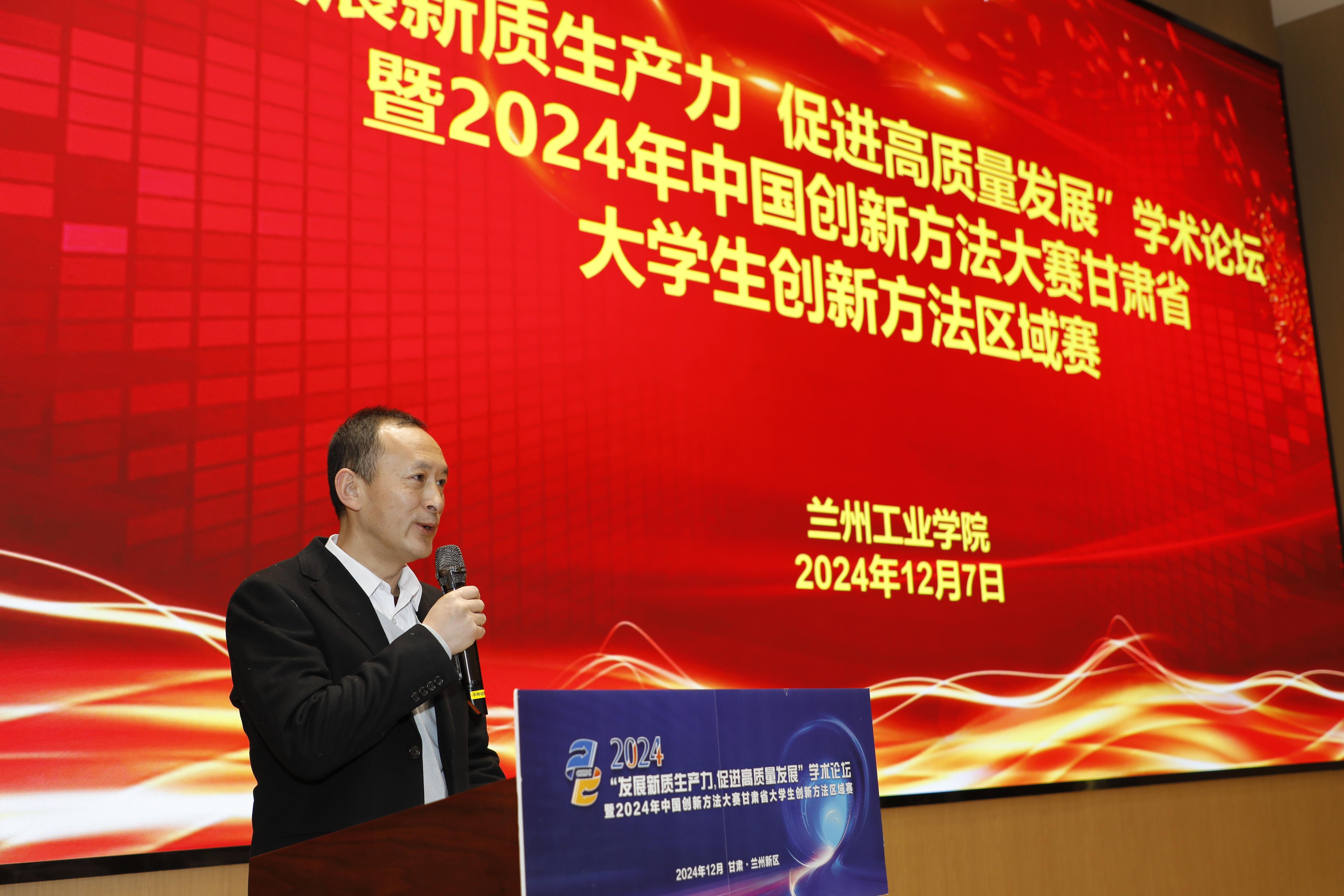 孙华指出,中国创新方法大赛是科技创新领域具有重要影响力的赛事,甘肃赛区近年来倡导并推动科技、人才的开放合作与交流,不断丰富拓展创新方法服务内容的深度和广度,为甘肃培养积聚了更多卓越工程师和高技能人才,产生了一批高价值创新成果、解决了一批技术难题,为甘肃省科技创新高质量发展作出积极贡献。谢黎明表示,甘肃省创新方法研究会高度重视科技创新和方法创新,希望广大师生能够以本次论坛和大赛为契机,不断深化对创新方法的理解和掌握,将所学所得应用到实际工作和生活中去,为推动甘肃省的经济社会发展贡献更多的智慧和力量。中国TRIZ杯大学生创新方法大赛秘书长吴永志,兰州市总工会副主席,大国工匠邹斌,广东省甘肃商会副会长刘小伟,中国高等教育学会工程教育专业委员会常务理事冯辉霞分别作了题为《以赛促学提升大学生创新方法应用能力》《为精业创新,匠心传承助推企业高质量发展》《创新驱动发展·新质赢未来》《创新方法助力培养大学生创新能力,赋能新质生产力发展》主旨报告。