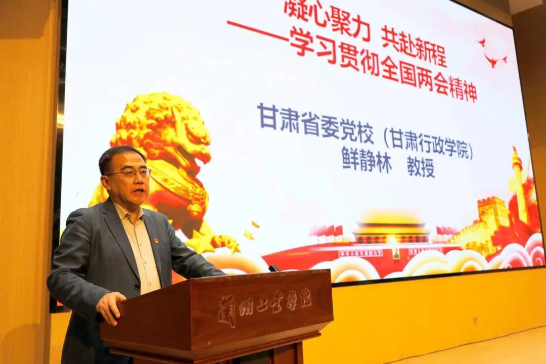 宣讲会上,鲜静林教授以《凝心聚力 共赴新程——学习贯彻全国两会精神》为题,重点从如何学习贯彻全国两会精神和学习两会精神的感悟等方面,对全国两会精神进行了全面系统的解读和阐释。陈天竺总编辑从个人参会见闻感受、甘肃代表团主要活动和工作情况以及个人履职情况等方面宣讲解读了全国两会精神,分享了参加全国两会时的亲身感受和体会。史燕蓉同学以《青春扎根乡村 书写诗与远方》为题,围绕“深入乡土中国,厚植深沉持久的爱农情怀”“扎根基层一线,磨砺‘自找苦吃’的精神信念”“立足乡村实践,练就可堪重任的兴农本领”三个方面,以青年学生的视角分享了学习体会。