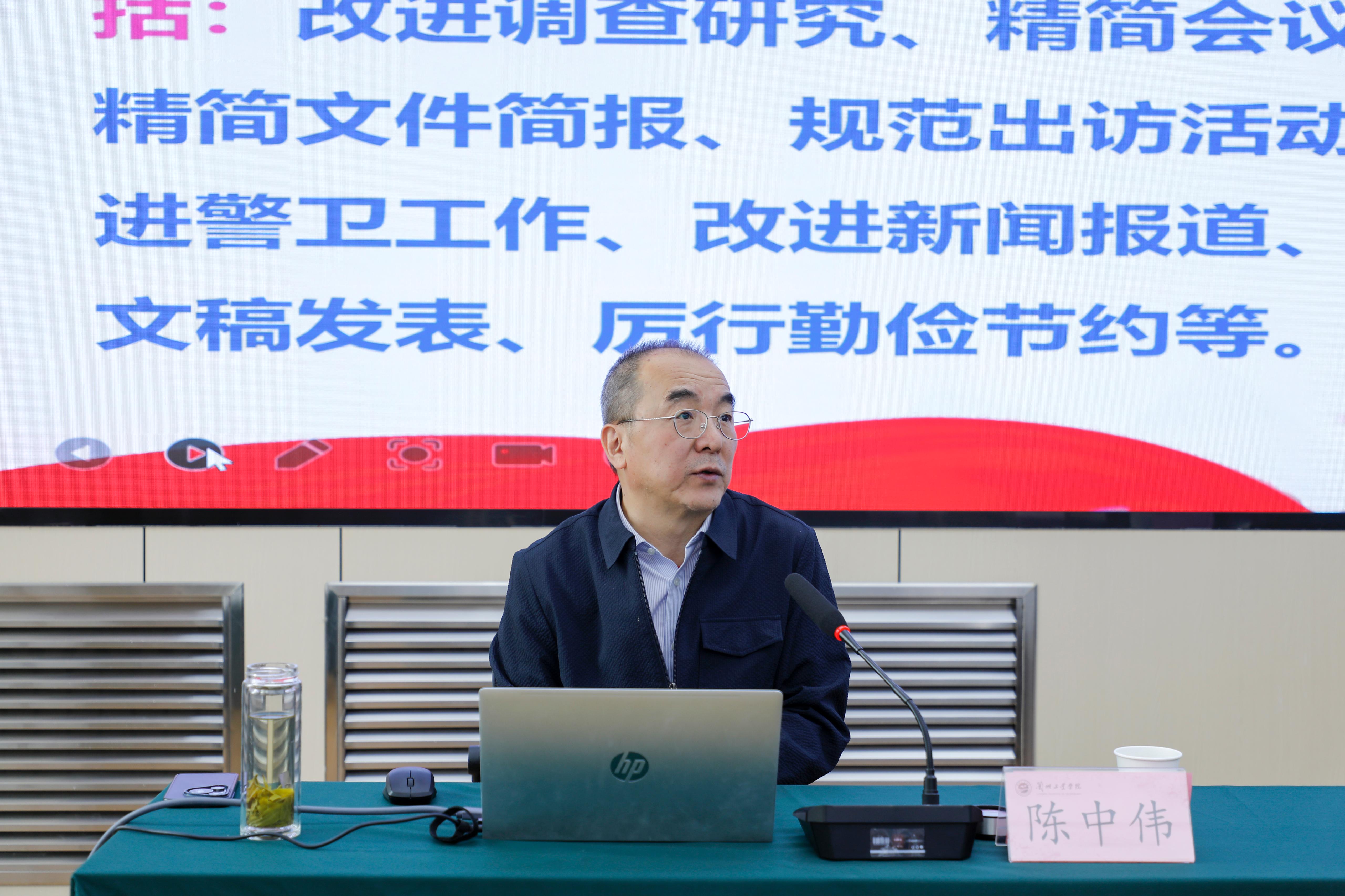 按照学校开展深入贯彻中央八项规定精神学习教育总体安排,4月18日上午,学校举行学习教育读书班专家辅导报告会,深入学习贯彻落实中央八项规定及其实施细则精神,持续推进党的作风建设常态化长效化。学校邀请省纪委监委第八监督检查室主任陈中伟为全体学员作专题辅导报告。党委书记韦尧兵主持报告会,校长刘新辉及其他党政领导班子成员出席报告会。
