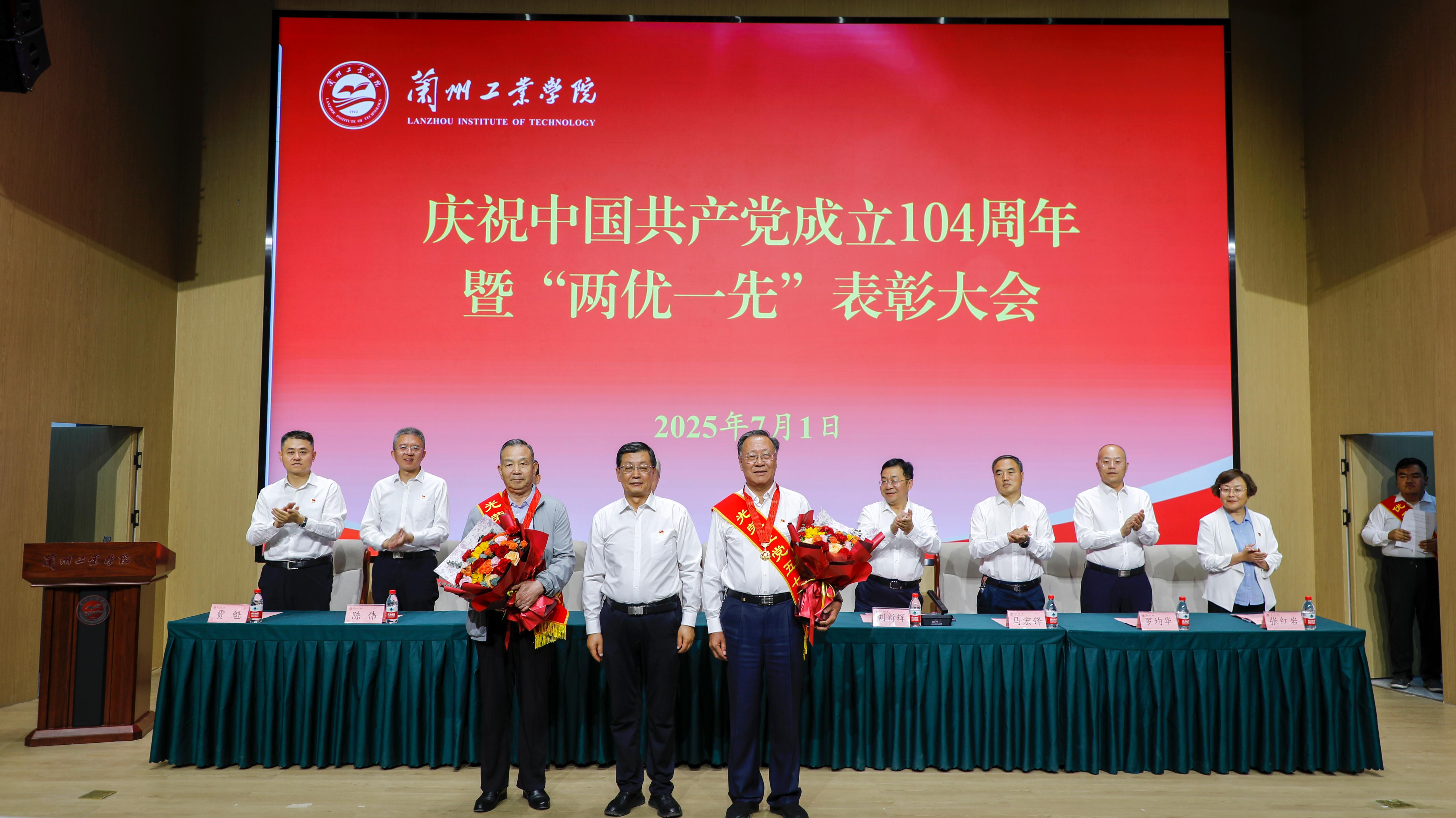 大会在庄严雄壮的国歌声中拉开序幕。面向鲜艳的党旗,全体师生党员举起右拳宣誓,共同将铮铮誓言与初心印刻心中。党委副书记黄荟铭同志宣读了“光荣在党50年”纪念章获得者名单和《中共兰州工业学院委员会关于表彰2025年“两优一先”的决定》。韦尧兵为“光荣在党50年”纪念章获得者代表陈彪同志、李云同志颁发纪念章,与会领导依次为受表彰的75名先进个人和6个先进单位颁奖。