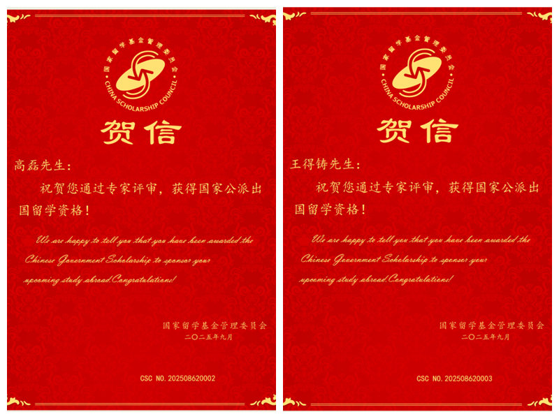 近日,国家留学基金管理委员会(以下简称“国家留基委”)公布了2025年与有关国家互换奖学金计划录取结果,我校推荐的机电工程学院王得铸、汽车工程学院高磊两名同学通过国家留基委专家评审,喜获国家公派出国留学资格,将于2025年底前赴阿塞拜疆高校攻读硕士学位。