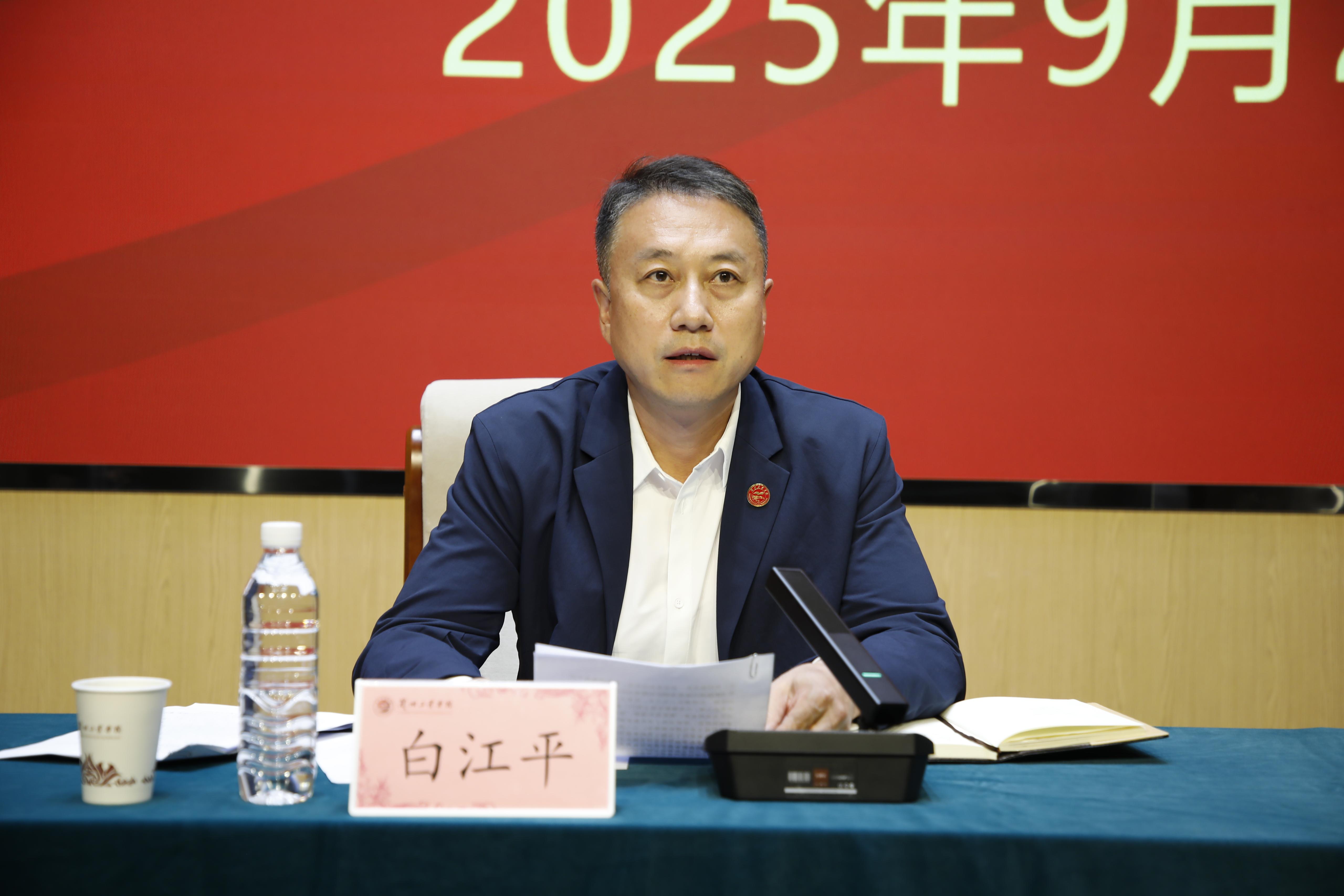 9月23日,学校在兰州新区校区图书馆报告厅召开2025年秋季学期中层干部大会。党委书记白江平主持会议并讲话,党委副书记、校长刘新辉出席会议并讲话,党委副书记黄荟铭,副校长王佰成、贾杰华、罗均华、李向伟,纪委书记、监察专员陈伟,党委委员、组织部部长贾魁出席会议,全体中层干部参加会议。