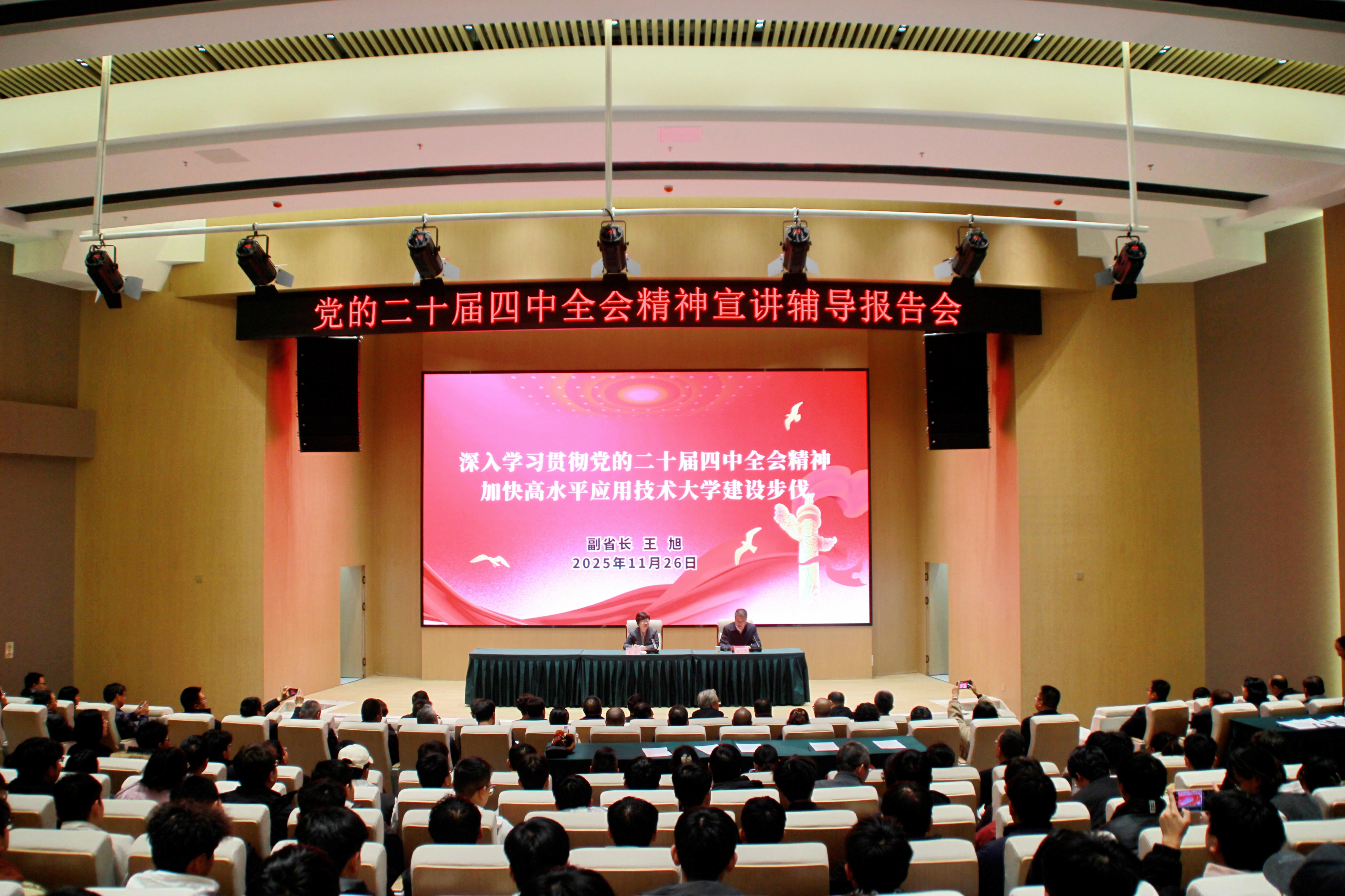 11月26日,副省长王旭在兰州工业学院宣讲党的二十届四中全会精神。王旭围绕全面掌握党的二十届四中全会召开的背景意义和《建议》起草过程,准确认识“十五五”时期在基本实现社会主义现代化进程中的重要地位,深刻领会“十五五”时期经济社会发展的指导方针、主要目标、战略任务和重大举措等方面,作了细致解读和系统阐释。要求兰州工业学院深入学习贯彻党的二十届四中全会精神,对标教育强国、教育强省战略部署,加快推进“教育、科技、人才”三位一体内涵发展,努力建设“工合底蕴深厚、工科特色鲜明、工业服务有力、引领作用显著”的高水平应用技术大学,在服务国家战略、助力我省高质量发展中彰显更大作为、贡献更大力量。同时,她勉励广大青年学子要大力弘扬“工合”精神,坚定信念筑根基、勤学善思增才干、强化历练勇担重任,努力成为“素质高、基础实、能力强、重应用、善创新”的新时代高素质应用型人才。