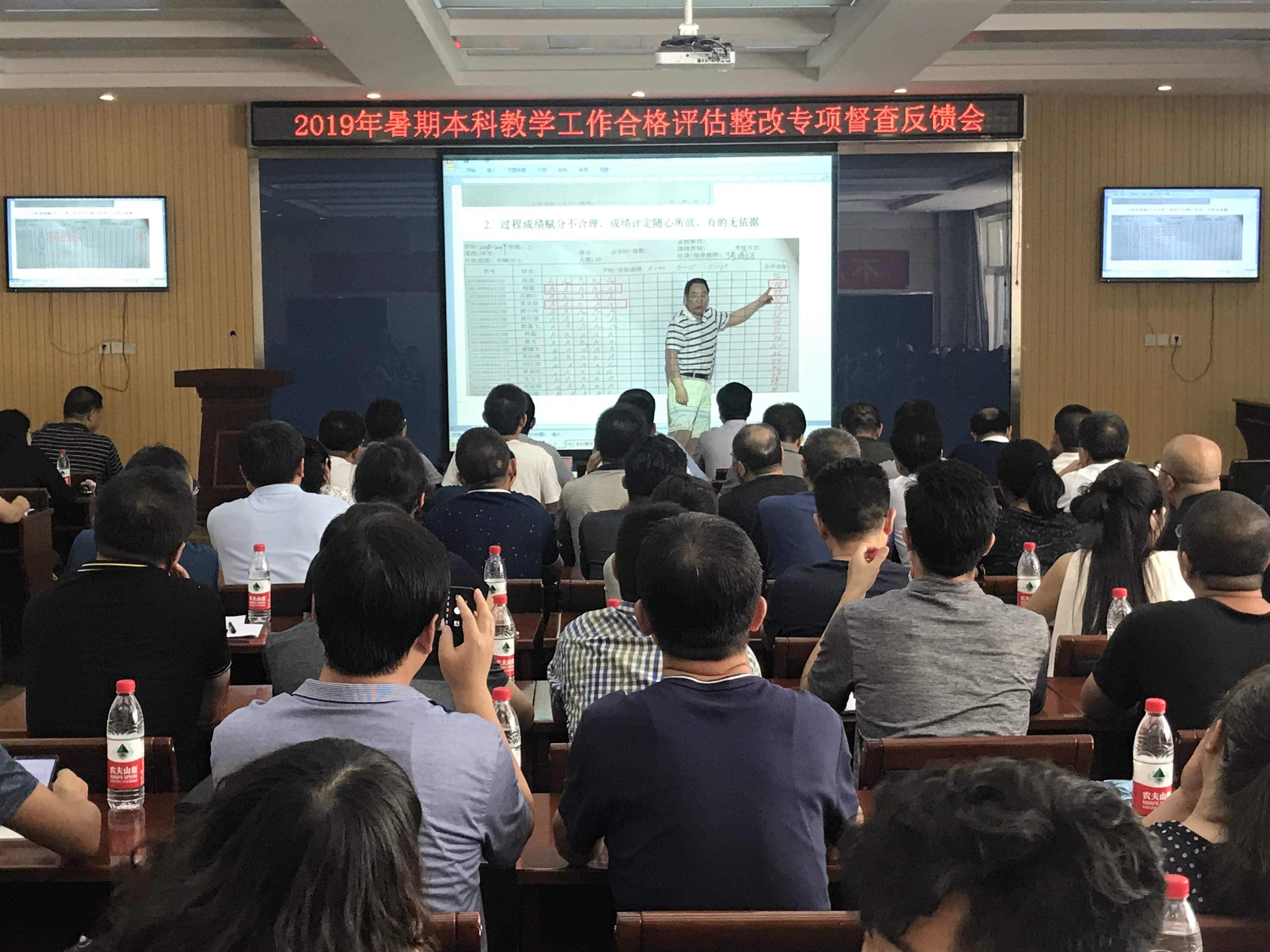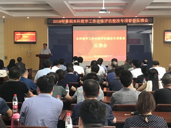 在8月3日下午召开的专项督查反馈会上,李贵山通报了本次督查情况,对下阶段工作提出了指导意见。廉志端在讲话中肯定了各教学单位本阶段评建工作的成绩,对学校下一阶段评建工作提出了要求。一是各教学单位院长、书记作为学院负责人要统一思想、明确责任。二是各单位要精心安排、严密组织、不留漏洞。三是各教学单位要科学工作、讲求质量、精益求精、严字当头,完成阶段工作任务。四是各单位要做到思想政治觉悟先行,思想上高度重视,形成合力,调动一切积极性,协调一致、同频共振。五是各单位要针对本次督查结果切实做好整改工作。各学院、部、中心班子成员,系(教研室)主任,院办、实践教学中心主任、教学秘书150余人参加了会议。