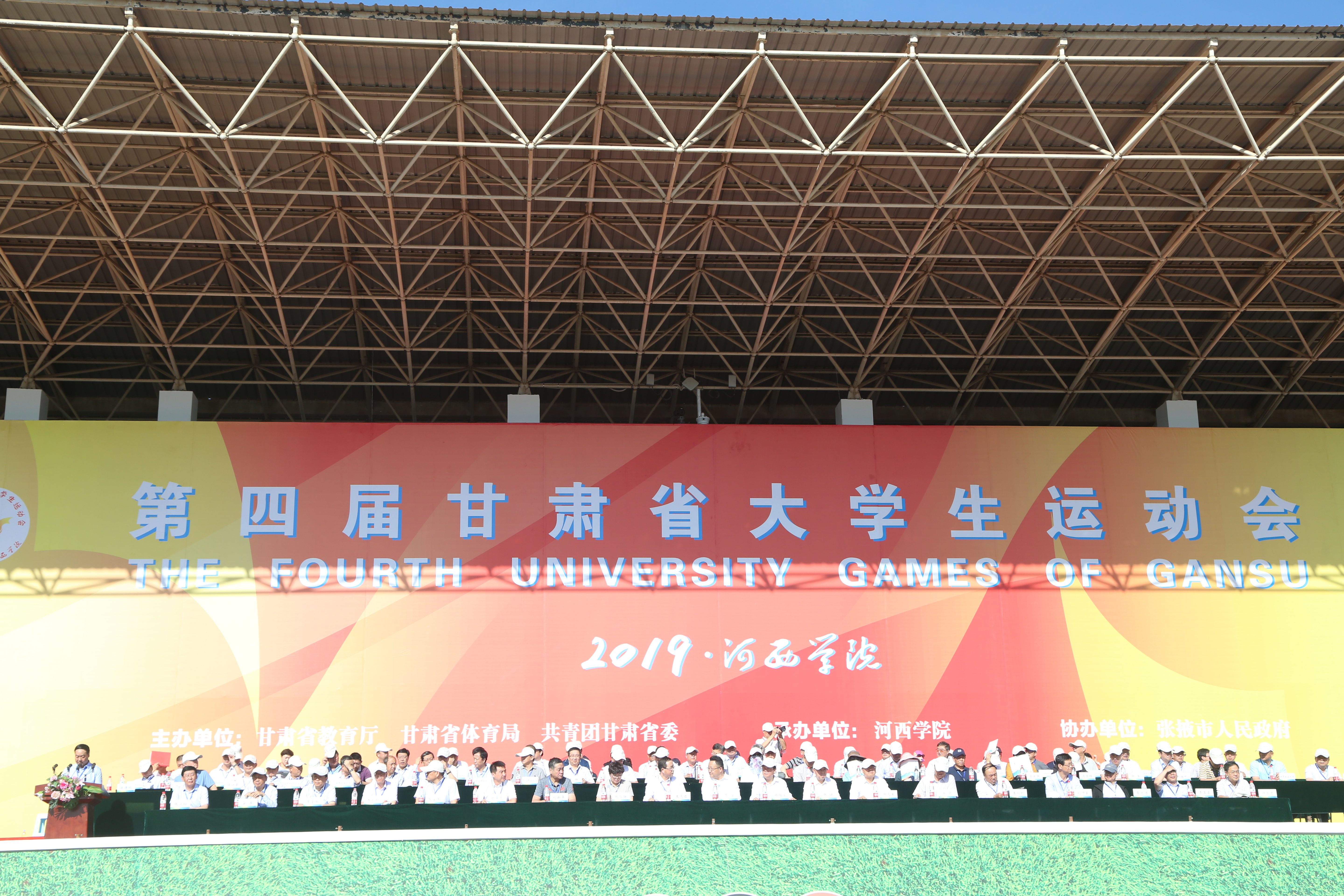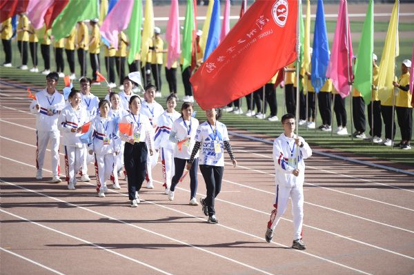 7月16日上午,由省教育厅、省体育局、共青团甘肃省委员会主办的第四届甘肃省大学生运动会在河西学院开幕。校长王华栋应邀出席开幕式。学校体育部党政负责人,代表团成员和健美操代表队参加了开幕式。