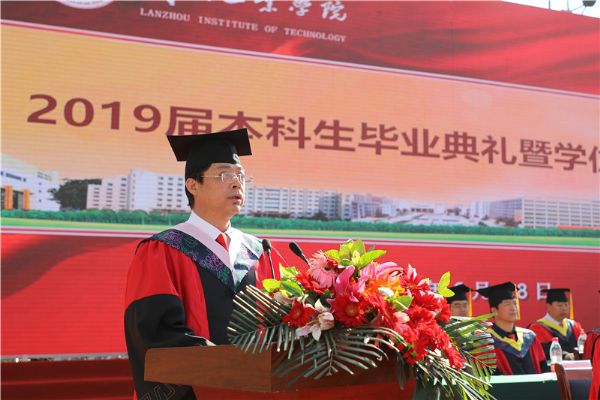 上午9时,随着雄壮激昂的国歌响起,毕业典礼开始。廉志端宣读《兰州工业学院关于表彰2019届优秀毕业生的决定》。李贵山宣读《兰州工业学院学位评定委员会关于授予本彦军等1867名本科毕业生学士学位的决定》。