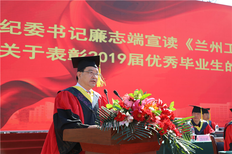 纪委书记廉志端宣读《兰州工业学院关于表彰2019届优秀毕业生的决定》