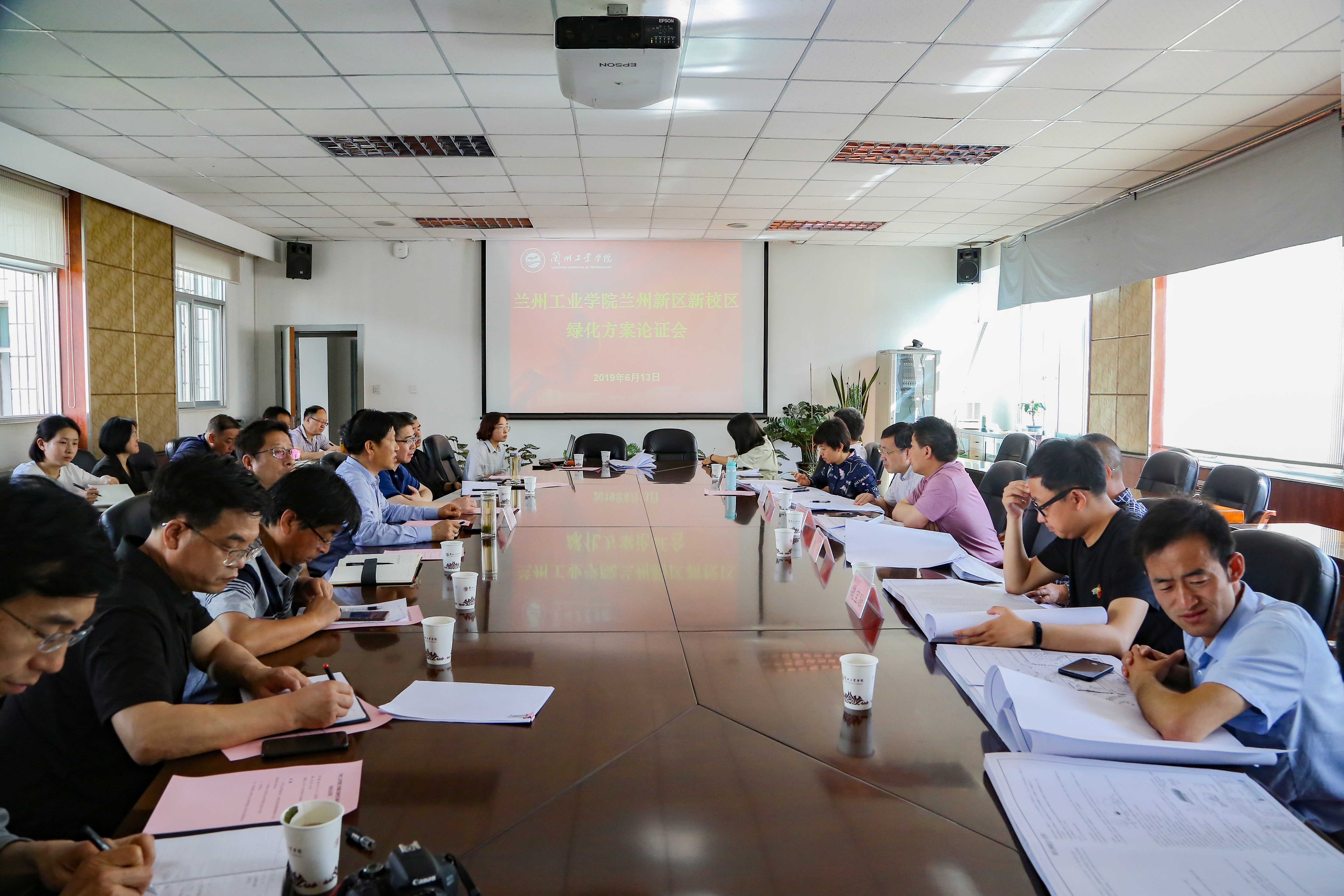 2019年6月13日上午,学校在第二会议室召开兰州新区新校区绿化方案论证会。副校长、新校区建设指挥部指挥长马铁信主持会议。信息中心、后勤管理处、艺术设计学院负责人、新校区建设指挥部全体成员参加了会议。