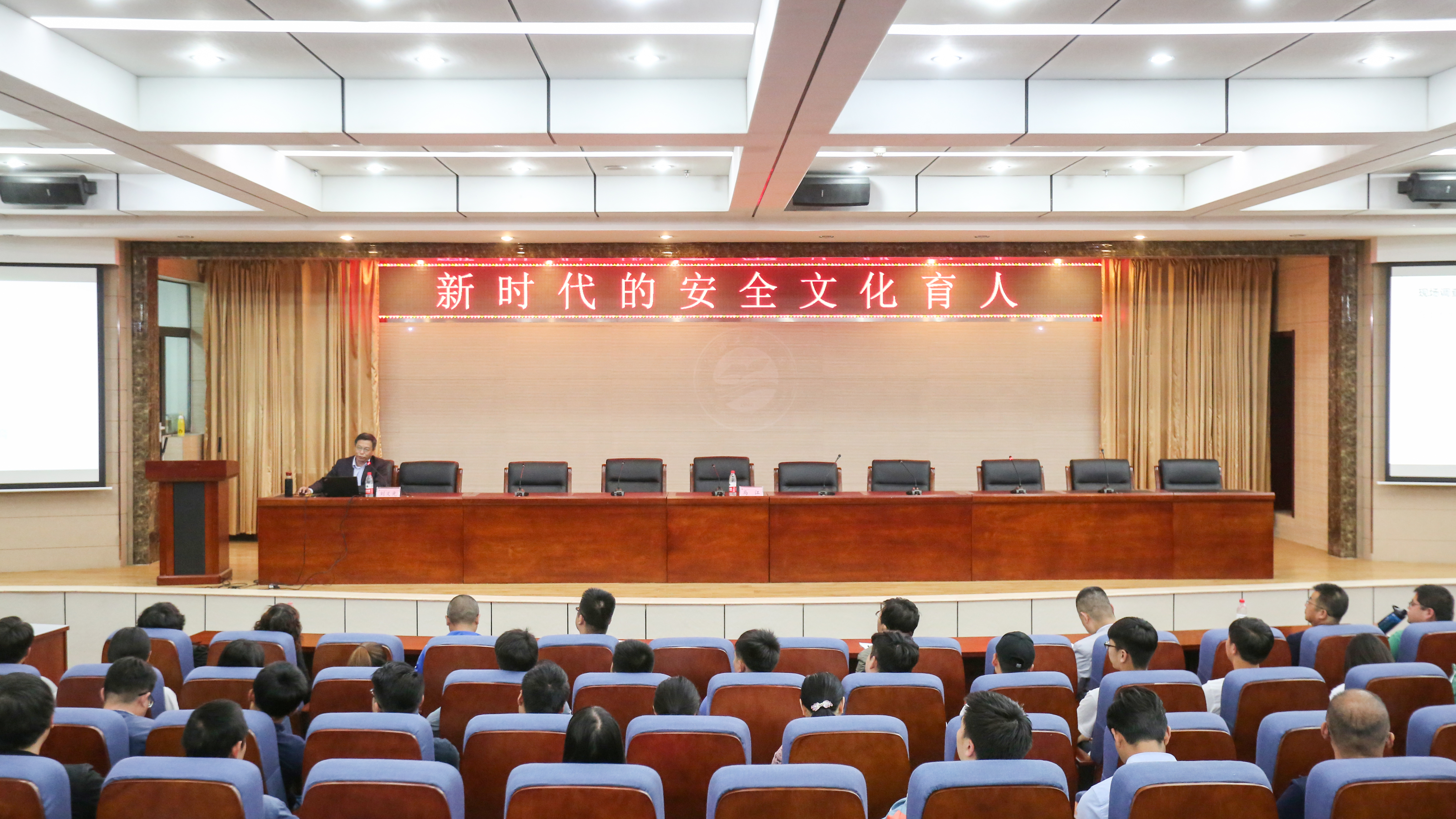 5月28日下午,学校邀请原北京大学医学网络教育学院院长助理、中国教育发展战略学会安全教育专业委员会理事刘义光研究员来我校作“新时代的安全文化育人”讲座。副校长马江主持讲座。学生处、保卫处、团委负责人,各二级学院分管学生副院长,学工办主任,全体班主任、辅导员及学生代表300余人听取了讲座。