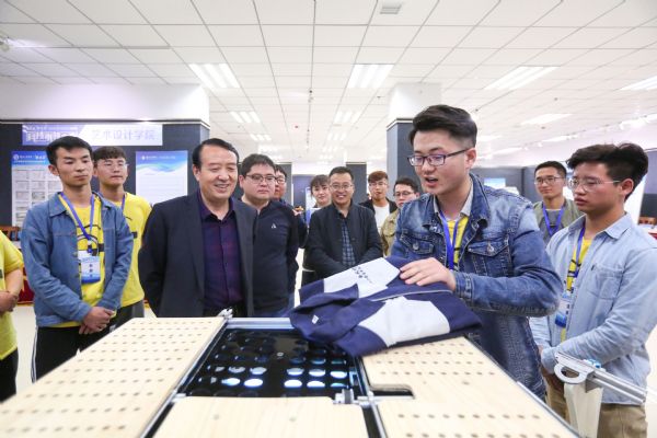 每到一个参赛作品展位,校领导都向参赛选手详细了解作品设计原理、功能、发展方向和应用前景等,并对参展作品提出改进建议。“挑战杯”全体参赛团队和队员通过作品现场操作、视频模拟演示、模型演示等方式讲解、演示作品。