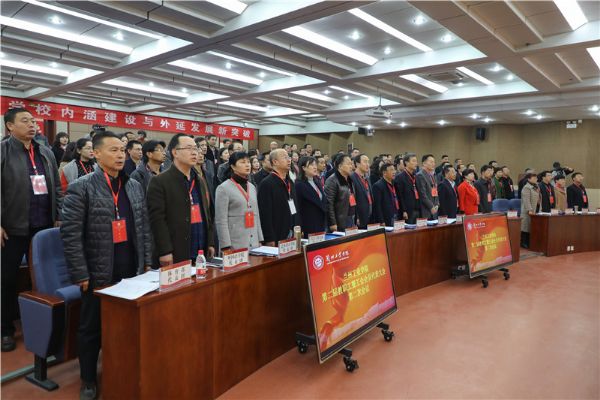 会议在雄壮的国歌声中拉开帷幕,俞子泓主持开幕式。王华栋代表学校作了题为《攻坚克难 狠抓落实 奋力推进学校内涵建设与外延发展新突破》的工作报告。报告全面回顾和总结了2018年学校工作,提出了学校2019年主要工作任务。