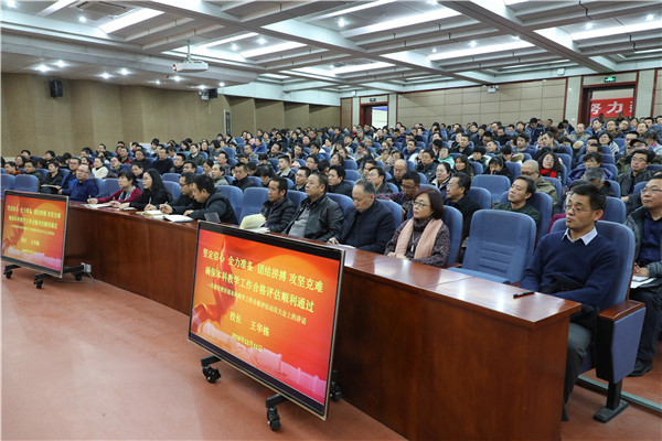 会上,王华栋作了题为《坚定信心 全力准备 团结拼搏 攻坚克难 确保本科教学工作合格评估顺利通过》的动员讲话。他指出,按照教育部文件要求和省教育厅工作安排,我校拟于2020年接受评估,从今天开始,标志着我校评估工作正式进入了全面启动和攻坚落实阶段,时间紧迫,任务艰巨,全校上下要从三个方面做好迎评促建工作。一是认清形势,提高认识。要充分认识合格评估的重要意义。通过明晰“四个促进、三个基本、两个突出、一个引导”的评估目标,真正领会合格评估对我校事业发展的极端重要性,确保通过教育部合格评估这个最低要求。真正实现从专科教育向本科教育、从专科学校向本科高校的转变,进而实现学校向高水平应用型本科的转变;迎评促建工作是新建本科院校成长发展的必由之路,我们必须精准发力,扎实推进。只有获得“合格”认证后,我校才会成为真正意义上的普通本科院校。要充分认识新时代高等教育的新要求。当前我国高等教育发展面临前所未有的机遇和挑战,深化改革、提高质量、办出特色,是各高等学校的共同选项。今年在教育领域先后召开的两个重要会议,全国教育大会强调了人才培养为本,本科教育工作会议则强调了本科教育是根,教育部关于全面振兴本科教育的系列文件则是具体的作战图。高等教育的这些新动向、新态势和新举措,对我校的迎评促建工作提出了新的更高的要求,增加了更大的挑战性。对此我们要有充分的认识,要内化于心,外显于行,对接融合应用到迎评促建的全部工作环节和过程。二是坚定信心,直面困难,打好迎评促建攻坚战。升本七年来,学校始终坚持按照创建合格本科院校的标准和要求办学治校,提出“补短板、强弱项、抓内涵、促转型、迎评估”的工作思路,秉承“跟着工业干,围着企业转,错位求生存,应用谋发展”的办学定位,学科专业布局不断优化、教学质量工程建设积极推进、师资队伍建设力度不断加大、基本办学条件切实改善、人才培养质量不断提高、教学管理不断规范,应用型办学取得明显成效,为我们通过本科合格评估奠定了良好基础。但同时,我校教学工作中不同程度存在的诸多不足和薄弱环节,要对标评估指标体系的 7个一级指标、20个二级指标、39个观测点的核心内容,充分借鉴评估专家对已完成评估院校的核心关注点和整改意见建议,对学校迎评准备需要关注的问题进行针对性的梳理归纳,把握重心、精准施策,围绕确保基本办学条件达标、着力加强教师队伍建设、优化专业培养方案和培养模式、深化本科教学改革、强化教学考核管理、完善教学质量保障机制等六个核心环节采取有效措施,重点加以解决。三是履职尽责,精准发力,全面落实迎评促建工作任务。要准确把握结合学校评估工作的总体目标和思路,按照实施方案中学习动员、自查自建、自评整改、预评整改、接受评估、总结整改六个阶段的安排稳步推进。