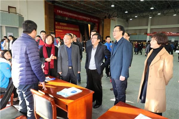 心系学子,情暖冬日。11月23日上午,由甘肃省教育厅及兰州理工大学承担的甘肃高校大学生就业创业能力提升工程项目——甘肃省兰白科技创新改革试验区企业精准招聘服务月启动仪式暨首场招聘会在我校体育馆举行。兰州理工大学副校长曾华辉,我校副校长马江、校长助理雷在福,兰州理工大学就业指导中心、我校招就处负责人,来自兰白四区60家企业及近千名毕业生参加启动仪式。 马江在致辞时对各位领导和企业界代表到我校招聘表示热烈欢迎。他说,甘肃省兰白科技创新改革试验区企业精准招聘服务月启动仪式暨首场招聘会在我校举行,充分体现了省教育厅对我校就业工作的高度重视和大力支持,是对我校各项工作的热情鼓励和积极鞭策,也感谢兰州理工大学的积极推动。一直以来,我校始终把毕业生就业工作放在十分重要的地位,确立了“校院齐抓,党政共管,全员参与,全程就业”的就业服务体系,坚持稳中求进,健全和理顺招生就业工作体制机制,持续提升生源质量,大力拓展毕业生就业市场,加强“三位一体”基地建设,毕业生就业率一直保持在85%以上。希望企业界的朋友们借此机会进一步加深对我校的了解,希望双方能建立深入持久的校企合作关系。 曾华辉讲话指出,本次“甘肃省兰白科技创新改革试验区企业精准招聘服务月”活动,是对省教育厅甘肃高校大学生就业创业能力提升工程项目的有力支撑,希望各高校就业部门负责人积极组织本校未就业学生前来参会,与企业代表密切沟通,积极联系,为企业着力解决招聘难,留人难,培训难的问题,为切实做到我省高等教育服务兰白四区经济发展这一重大战略决策贡献力量。 此次招聘会旨在实现高校毕业生与兰白四区优质企业精准人岗匹配,搭建人才供需高效招聘服务平台,聚才引智引领创新发展,筑巢引凤打造人才高地,全面推进省内企业人才体系建设,为建设幸福美好新甘肃实现全面发展贡献力量。
