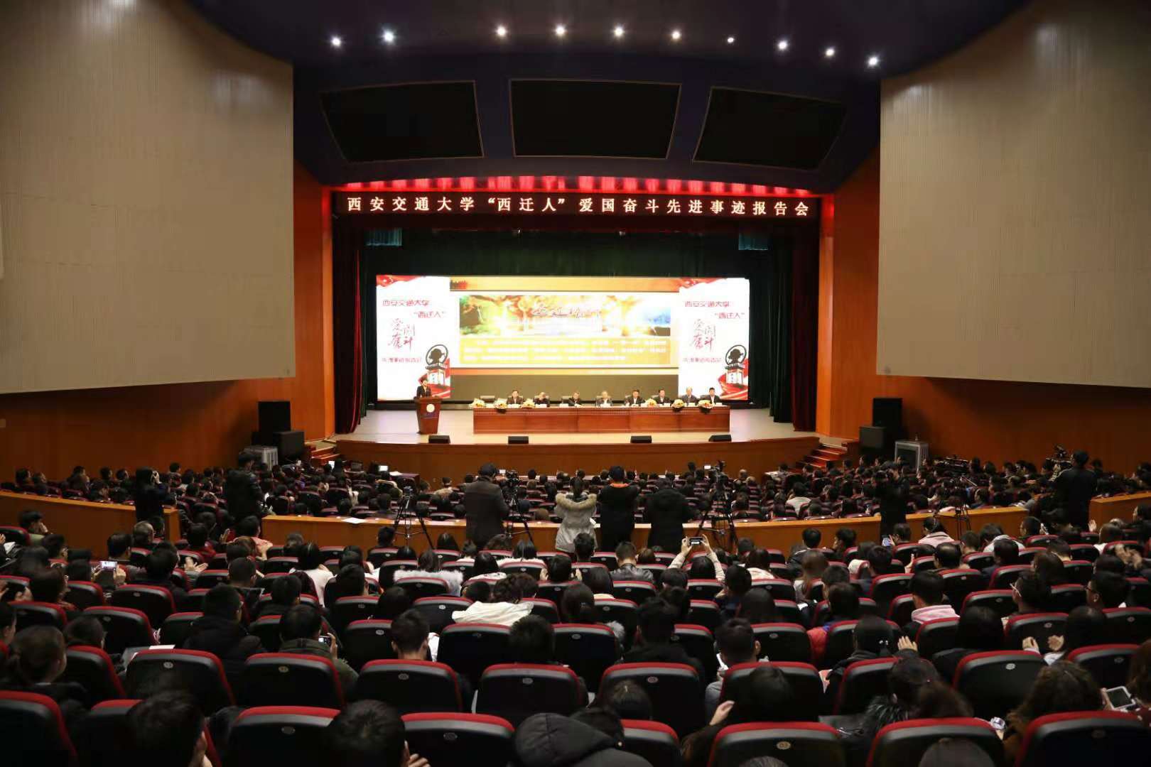 报告会上,西安交大党委常委、副校长郑庆华,西迁老同志代表、西安交大教授胡奈赛,中国科学院院士、西安交大教授管晓宏,国家“千人计划”青年项目入选者、西安交大教授徐峰,西安交大博士研究生林舒进,陕西广播电视台记者陈媛等6位报告团成员,结合亲身经历及感悟,以真挚的语言和生动的故事,从不同角度回望了交通大学波澜壮阔的西迁征程,讲述了西安交通大学“西迁人”感人至深的先进事迹,展现了老一辈知识分子胸怀赤子之心、坚守报国之志,把自身的前途命运同国家民族命运紧紧相连的胸襟与情怀,再现了六十多年来一代代西交人扎根黄土地,献身祖国建设的历史场景。