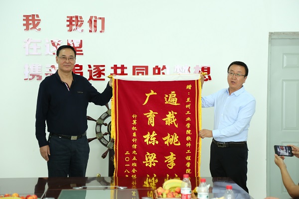 座谈会上,学院党委书记赵亚明代表学院向各位校友的到来表示热烈欢迎!学院副院长李向伟向校友们详细介绍了学院历史沿革、办学规模、师资队伍、人才培养、科学研究、毕业生就业以及服务社会等情况,同校友们一起感受学院的发展成绩。计信95班班主任,现学校基础学科部主任祁忠斌在发言中深情回忆了师生情。计信95班校友赵强代表全班同学发言,校友们讲述了自己毕业后的心路历程,感慨母校的发展变化。毕业后,他们中的多数已成为计算机行业的高级工程师、企事业单位的主要负责人。校友们以班级名义向学院赠送了一面锦旗。