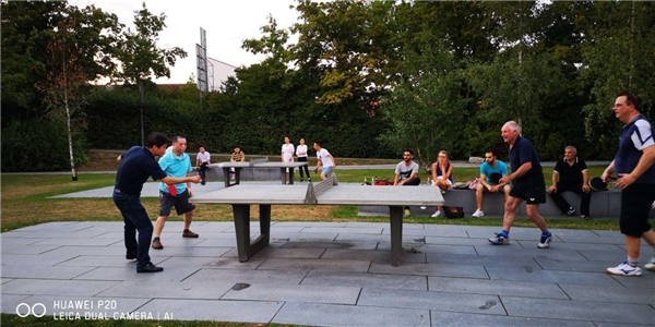课间学员与市民进行乒乓球比赛切磋交流