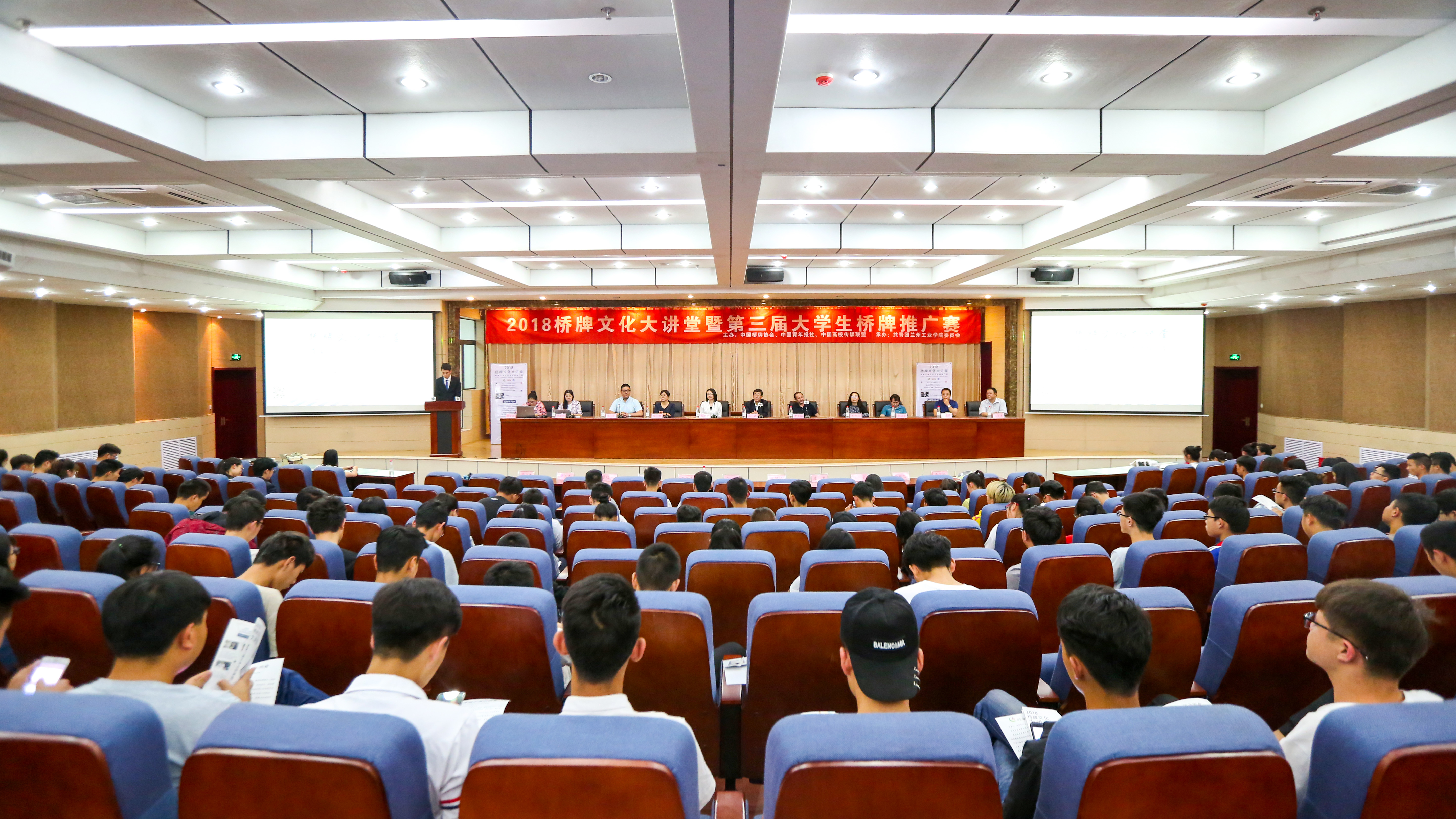 6月8日下午,由国家体育总局棋牌运动管理中心、中国桥牌协会、中国青年报社、中国高校传媒联盟主办,甘肃省桥牌协会与我校共同承办的桥牌文化大讲堂暨第三届大学生桥牌推广赛活动在我校第三学术报告厅举行。中国桥牌协会副秘书长王艳楠,甘肃省桥牌运动协会会长曹长林,中国桥牌普及推广大师、中国桥牌协会黑桃中级大师张宁,中国体育报副总编辑陈君,中国桥牌协会社会主管原玉杰,中国青年报社高校传媒联盟秘书处毕若旭,甘肃省桥牌运动协会秘书长李聪智,我校党委委员、副校长马江出席活动,土木工程学院院长、大学生桥牌协会指导教师马守才等200余名师生参加了活动。