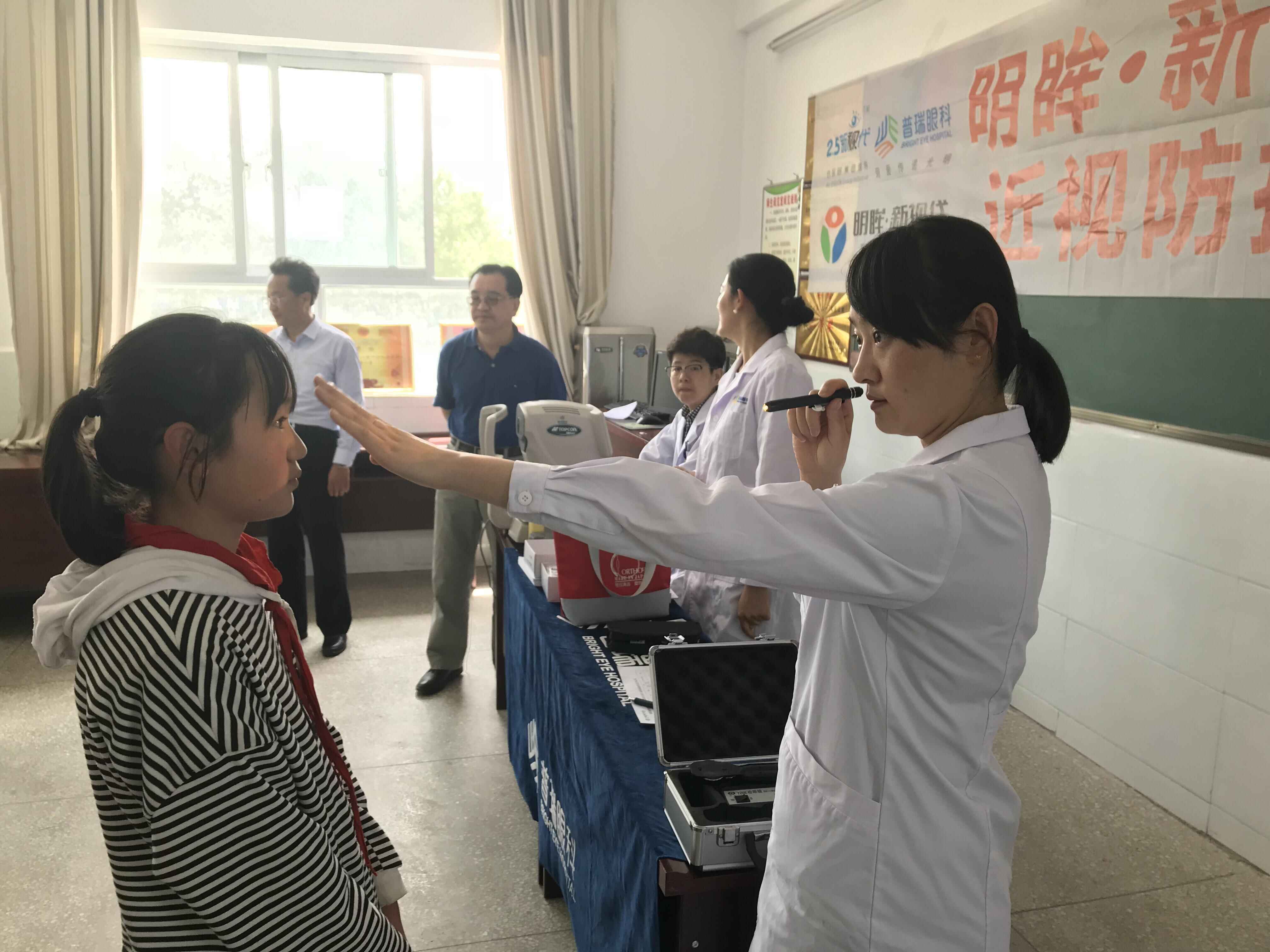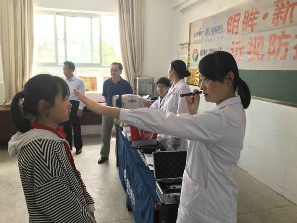 随后,眼科医生为高关小学400多名小学生逐一进行视力检查、电脑验光、插片验光等,经检查有27名近视、弱视眼疾的学生,医院将为这些学生免费配镜治疗。为在小学生中普及护眼常识,配发了《儿童眼睛健康手册》、视力检查表等。