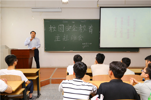 5月15日下午,学校领导俞子泓、王华栋、李贵山分别深入各班级检查指导“校园安全教育”主题班会观摩活动。 各班级在召开主题班会之前都做了精心准备,班会采用多媒体课件、情景剧、视频影像、数据分析等多种形式,将涉及国家安全、宿舍安全、行为安全、交通安全、法制教育、生命安全等多项安全教育内容向学生们进行了集中细致形象的讲解宣传。 学校领导对主题班会活动进行点评并给予充分肯定,认为班会主题鲜明、形式新颖恰当、师生互动积极,具有较强的针对性,发挥了教师主导、学生主体和较好的安全教育引导作用。校领导强调,牢固树立安全意识,加强校园安全稳定,确保学生人身安全是学校对学生工作的基本要求。校领导要求,各学院、各部门要高度重视学生安全工作,要始终把这项工作作为创建平安和谐校园的一项重要内容常抓不懈。二是要认真落实有关学生安全工作措施,建立严格完善的规章制度和安全工作应急预案,对影响学生安全稳定的因素做到早防范、早发现、早汇报,确保校园安全稳定。三是要突出重点,注重教育效果,要进行安全自查自纠,竭力消除各种校园自安全隐患。 自5月7日开始的为期一月的“校园安全教育”是为了进一步贯彻落实党中央、国务院关于学校安全工作的决策部署,按照陈宝生部长在全国学校安全工作电视电话会议上的讲话精神和学校安全工作要求开展的主题班会观摩活动。活动不仅使同学们获得了相关的安全知识,提高了自我安全防范意识和突发事件应对能力,也使学生深刻认识到安全问题来不得半点麻痹和侥幸,必须有防范在先、警惕在前的安全思想;必须要有警于思、合于规、慎于行的安全责任意识。
