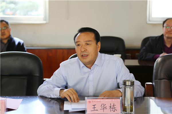 王华栋说,朱廷珺一行来调研为我校新区新校区建设工作提供了有益启发,希望管委会一如既往关心支持我校的发展建设,多联系多沟通、多来学校指导工作。我校目前一方面努力拓展办学空间,另一方面着力加快转型发展,已逐步从关注硬件建设转向软件建设。今后将继续调整学科专业结构,让装备制造、新型材料等重点专业、主导专业早日对接新区产业,为甘肃经济社会发展做出贡献。