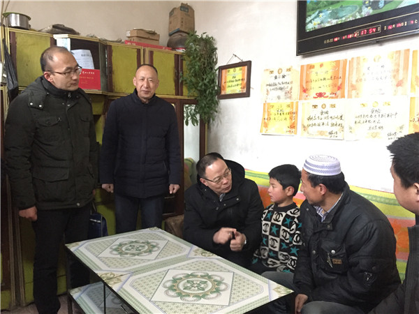 腊月的积石山天寒地冻,甘肃省委副书记孙伟深入积石山县调研脱贫攻坚工作。 每到一处不打招呼直接入村入户,当走到我校帮扶点——胡林家乡左家村时,向我校驻村挂职第一书记、工作队长马俊年详细询问了精准扶贫精准脱贫工作遇到的实际困难和问题,亲切慰问了学校帮扶贫困户马麻乃家,对学校精准扶贫的做法和成效以及派驻干部冒着严寒,踏着积雪,翻山越岭,走村入户,了解实情给予充分肯定。他指出:要深入学习贯彻习近平新时代中国特色社会主义思想和党的十九大精神,做足精准文章,下足“绣花”功夫,把“一户一策”做细致做扎实,夯实扶贫脱贫基础。 学校党委第一时间要求学校各级干部,要借助孙伟副书记鼓励的东风,深入落实指示精神,发挥学校优势,全面做好精准扶贫工作,以敢死拼命的精神和决战决胜的勇气坚决打好脱贫攻坚战。 连日来,党委书记俞子泓,校长王华栋等校领导以身作则,率先垂范,亲临胡林家乡左家村、吊坪村慰问特困群众,分期分批派出帮扶干部,实地了解贫困户的基本情况、主要致贫原因、脱贫打算和途径、收入支出账等,用说事写实的办法,用农民群众的话语,进一步制定完善符合实际、群众明白认可、能具体落地的“一户一策”精准脱贫计划和“三本账”,为做好精准帮扶工作打下了良好的基础。 2月1日,省委举办的落实“一户一策”帮扶计划培训班刚刚结束。3日,校长助理、办公室主任、扶贫办主任雷在福带领帮扶干部,赴吊坪村召开学校落实 省委“一户一策”工作座谈会,帮扶村“两委”成员、驻村第一书记和帮扶工作队长,以及县乡包村组长参加会议。会上,雷在福宣讲党的十九大精神,从习近平新时代中国特色社会主义思想到乡村振兴战略的实施,深刻阐述决胜全面建成小康社会的重大意义,勉励基层一线“战斗员”,发扬特别能吃苦、特别能攻坚、特别能协作,特别能奉献的精神,切实把帮扶工作做细做实做到位。与会干部紧紧围绕精准识别、精准施策以及如何帮、怎样帮,积极建言献策,展开热烈讨论。雷在福指出,为进一步做好2018年帮扶工作,我们要紧密协作,突出在精准识别、扶志造血、特色产业、村委班子建设上下功夫,决不辜负中央、省委的重托和帮扶群众的期望。 会后,雷在福现场为困难群众书写赠送春联,并带领帮扶干部走访慰问郝文元、马正花、张万龙等贫困户,为群众送去了新春的祝福和温暖。