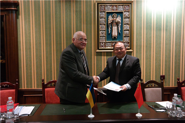 在乌克兰文尼察国立技术大学访问期间,俞子泓一行在该校校长会议室会见了该校校长Volodymyr V. GRABKO教授、副校长Viktor Mizemyy教授和国际关系中心主任Mykola Pradivlianny教授,双方就学生留学、教师访学、文化交流、校际联络与高层互访等方面合作达成共识,签署了《兰州工业学院与文尼察国立技术大学合作备忘录》,随后参观了该校大学生艺术中心。