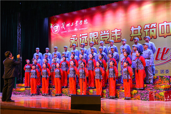 比赛在机关党总支《走向复兴》《旗帜颂》的大合唱中拉开帷幕。15支代表队依次演唱了《唱支山歌给党听》《没有共产党就没有新中国》《保卫黄河》《祖国不会忘记》《四渡赤水出奇兵》《共圆中国梦》《母亲是中华》等一曲曲熟悉的旋律。热情讴歌了伟大的党、伟大的祖国和伟大的时代。演出高潮迭起,精彩纷呈,唱出了广大教职工对党的热爱,对祖国的热爱,对工业学院的热爱。一首首经典革命歌曲和弘扬时代正能量的旋律,或高昂雄浑、或激越澎湃,展示了广大教职工不忘初心、牢记使命,昂首奋进新时代、同心共筑中国梦,为实现中华民族伟大复兴而奋斗的豪情。体现了工院人团结奋进、砥砺前行、加快兰州新区新校区建设,着力推动学校转型发展的坚定信心。