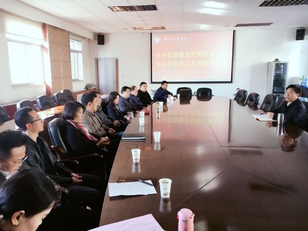 各民主党派负责人、无党派代表人士结合自身实际,畅谈了对党的十九大精神的学习体会。大家一致表示,十九大报告提出了中国特色社会主义进入新时代的重大论断,明确了新时代中国特色社会主义思想,擘画了未来中国发展的宏伟蓝图,令人倍感振奋、深受鼓舞。新的目标已经确定,新的征程已经开启,作为高校教师要深入学习领会十九大精神,把思想和行动统一到十九大精神上来,自觉增强维护中国共产党领导、坚持走中国特色社会主义道路的政治共识,切实以党的十九大精神为引领,立足本职岗位,更好地履行参政议政、民主监督职能,为学校新校区建设和转型发展贡献智慧和力量。