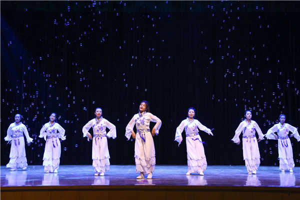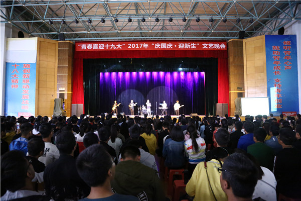 9月26日,学校在本校区大礼堂隆重举行2017年“青春喜迎十九大”“庆国庆·迎新生”文艺晚会。副校长李贵山,各院(部、中心)、处室负责人、团总支书记以及2017级新生观看了演出。 晚会紧紧围绕“喜迎十九大”、“庆国庆·迎新生”两个主题,以歌曲、舞蹈、小品等多种形式展现工院莘莘学子的青春活力,内容丰富、精彩纷呈、高潮迭起。晚会在激情四射、动感十足的吉他协会演唱中拉开帷幕。回族舞蹈《花儿漫漫》、蒙古族舞蹈《不落的太阳》、汉族舞蹈《乡趣》、军旅舞蹈《青春迷彩梦》、傣族舞蹈《彩云之南》舞姿曼妙、婀娜多姿、英姿飒爽,舞者们用不同的舞蹈形式让全场观众沉浸在优美舞姿所带来的视觉盛宴中。朗诵《以青春的名义献礼》、《少年中国说》等,紧紧围绕党的十九大,充分展现了工院学子永远跟党走的理想信念以及健康向上、青春昂扬的精神风貌。2017年校园歌手大赛优秀歌手集体带来的歌曲联唱,载歌载舞,喝彩声此起彼伏,展现了工院学子多才多艺超群的才能。武术《棍扫乾坤》包括双节棍、长棍,刚劲利落的动作,激昂向上的精神,充分展现武术雄风,弘扬了中华武术精神。教师王斌演唱的歌曲《You raise me up》更是将晚会推向高潮,赢得阵阵掌声。小品《兄弟,别闹》以诙谐幽默的表演方式再现了感人至深的室友情、同窗情和母校情,绽放着青春与梦想的光芒,使在场新同学对未来充满无限希望和自信。现代舞串烧《Hate》、《炫舞飞扬》、《宫商角徵羽》激情四射,动感十足,带动了现场气氛。演出在教师郭晶晶、王斌、田超、吕雪婷共同演唱的歌曲《相亲相爱》中落下帷幕。晚会全程通过微信墙、映客直播的方式与在场观众进行互动,为晚会增色不少。
