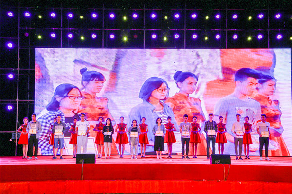 6月20日晚,南校区足球场灯光璀璨、歌舞飞扬,“青春见证,梦想起航”欢送2017届毕业生暨大学生艺术展演颁奖晚会在这里隆重举行。副校长魏军、李贵山,总会计师王多兴、校长助理雷在福以及各职能部门、各学院负责人与3000余名师生一同观看了演出。 晚会在毕业生代表集体制作拍摄的视频《青春不散场》中拉开帷幕,由青春见证、大艺展颁奖、梦想起航三个篇章组成,集中呈现了我校大学生艺术展演中部分优秀作品,带领毕业生们重温青春过往,勾起满满回忆,吸引了全场观众的目光;开场舞《青春见证》激情炫动、活力四射,点燃了现场激情;学校教职工合唱团的老师们不畏风雨,倾情演绎的《红帆船》、《共圆中国梦》赢得了现场观众热烈的掌声;舞蹈《花儿漫漫》、《彩云之南》、《乡趣》舞姿曼妙、婀娜多姿,展示了大学生的青春活力,舞者们出色的表现让观众赞叹不绝,喝彩声此起彼伏;小品《兄弟,别闹》以诙谐幽默的表演方式再现了感人至深的室友情、同窗情和母校情;由毕业生鲁颖改编作词,刘恒星演唱的歌曲《工院、工院》以及毕业生代表朗诵的《再别康桥》等节目用独特的方式传递出对未来的期望和对母校的依依不舍之情,将晚会的气氛推向高潮;田超老师演唱的歌曲《天高地厚》引爆全场,赢得阵阵欢呼声;朗诵《青春报告》,展现了工院学子昂扬向上精神风貌;晚会在教师郭晶晶、孔杰、吕雪婷演唱的歌伴舞《青春中国梦飞扬》中落下帷幕,激励毕业生为梦想而奋勇前行。 晚会表彰了2017学校大学生艺术展演获奖作品,以此鼓励全校师生在感受美、表现美、鉴赏美、创造美的过程中增强传承中华优秀文化艺术的责任感和使命感,让毕业生们再次感受兰州工业学院这个大家庭的温暖,深化了母校情、师生情和同学情,也表达了对2017届全体毕业生的美好祝愿,营造了健康,典雅,和谐的校园文化氛围。