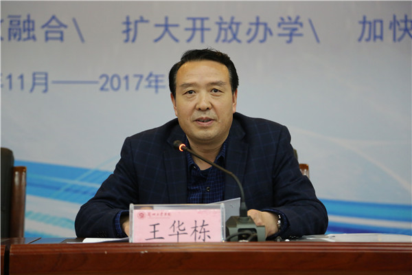 王华栋在主持报告时对朱士中教授不远千里来校“传经送宝”表示诚挚的谢意!他指出,朱校长用翔实的数据、具体的实例,从关于转型、对转型的认识、为什么转、转什么、怎么转等方面,深入分析了新建本科院校在建设发展过程中面临的挑战、机遇,阐述了地方新建本科高校应用型人才培养之路,对于我校转型发展具有重要指导意义,为我们做好学校“十三五”期间的教育教学改革提供了有益的参考和借鉴。王华栋要求全体教职工要善于学习、认真分析,结合学校具体实际,将报告中的新理念、新思路、新方法消化吸收好,进一步推进学校教学、科研、管理等各项工作,不断提升我校办学水平。