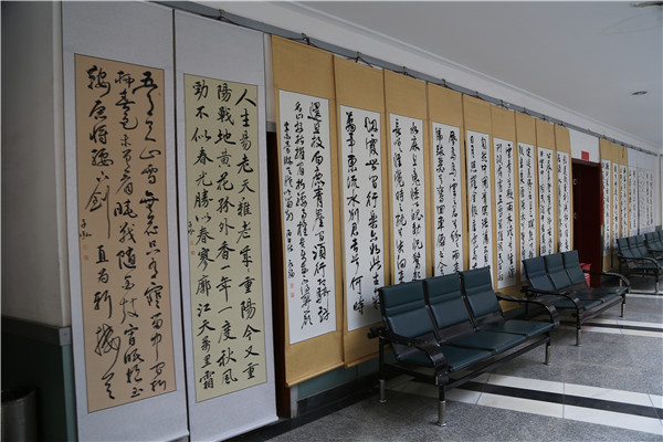 1月3日上午,学校迎新春书画展在职工之家开展。党委书记俞子泓,校长王华栋,副校长冯彪、魏军,纪委书记廉志端,党委委员、总会计师王多兴,校长助理雷在福亲临现场观摩指导。 本次展览共征集到200 余幅作品,其中包括隶、行、草及山水、花鸟等书画作品。展览主题突出,内容丰富,题材广泛,风格多样,艺术气息浓厚。学校广大书画爱好者积极参与、精心书写,展示了学校广大书画爱好者高雅的精神风貌和对生活的热爱、对新年的祝福,抒发了爱党、爱祖国、爱学校的真挚情感。