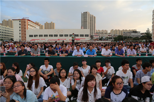 6月21日晚,南校区足球场灯光璀璨、歌舞飞扬,由党委宣传部、学工部、教务处、招生就业处、团委、学生会共同主办的“青春见证,梦想起航”欢送2016届毕业生晚会暨“我最喜爱的教师”颁奖典礼在这里隆重举行。党委书记高永新,校长王华栋,党委副书记、副校长俞子泓,副校长魏军、马铁信、李贵山,总会计师王多兴,校长助理雷在福与3千余名师生一同观看了演出。 晚会分为青春、见证、启航三个篇章。在第二篇章中隆重举行了2016年“我最喜爱的教师”颁奖典礼,我校离退休教师尤世炎教授受邀宣读颁奖词并宣布获奖名单,尤世炎和校学生会主席贾学亮一同为获奖老师颁奖,优秀毕业生代表为13位获奖老师献上鲜花表达对老师的深深谢意!基础学科部教师张锂代表获奖教师发言。诗歌朗诵《老师,快推开窗子看看吧》、王斌老师深情演绎的独唱《老师,我想你》深深打动在场师生。 秦腔《金沙滩》选段、中英日法四语小合唱《栀子花开》、武术《火舞青春》、舞蹈《俏花旦》等节目鲜明再现了丰富多彩的校园生活,现代舞《lion Heart》、《宠爱》、健美操《向明天出发》、合唱《相信我们会创造奇迹》、藏歌伴舞《祝福》表现了工院学子青春靓丽、意气风发的精神面貌,孔杰、田超老师携4届校园歌手大赛冠军联唱《那些青春的歌》,一曲高亢的《我是一只小小鸟》更是引爆全场。舞蹈《我们毕业了》、《冲锋》、原创诗歌朗诵《我是中国少年》为整场晚会点题,晚会在一曲《节日欢歌》后落下帷幕。现场观众除观看精彩节目外,还通过微博墙参与互动,在欣赏节目的同时,通过微博平台表达对毕业生的祝福。(团委/供稿 宣传部/摄影)