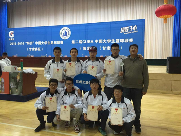 近日,2015-2016“特步”中国大学生男子校园足球联赛和第二届CUBL中国大学生篮球联赛(阳光组)甘肃赛区比赛在兰州理工大学落下帷幕。本次比赛共有14所高校组队参加。经过11天的激烈角逐,我校足球代表队和男子篮球代表队分别获得甘肃赛区校园组三等奖,魏家鹏、李斌老师分别获得“优秀教练员”称号。(供稿、摄影/体育部)