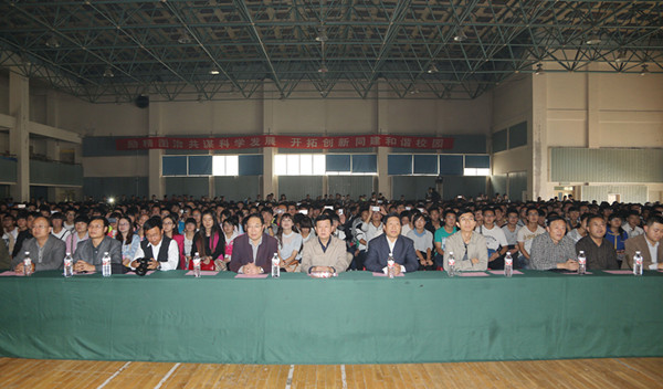 9月29日,学校“庆国庆、迎新生”文艺演出在北校区大礼堂举行。党委书记高永新,校长王华栋,副校长马铁信、李贵山,总会计师王多兴,各院(部、中心)、处室负责人以及全校2015级新生一同观看了演出。