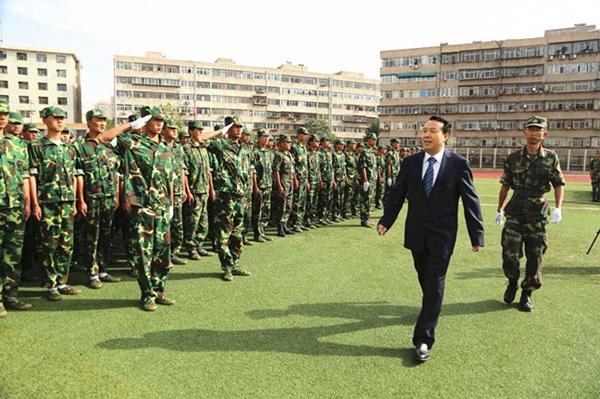 上午9时,校长王华栋在军训团副团长、解放军96376部队侯磊上尉的陪同下检阅军训方阵。随后进行了分列式表演。在队列、军体拳、女子健身操汇报表演过程中,参训学生们以饱满的精神、嘹亮的口号和端正的军姿展现了军训取得的成绩。