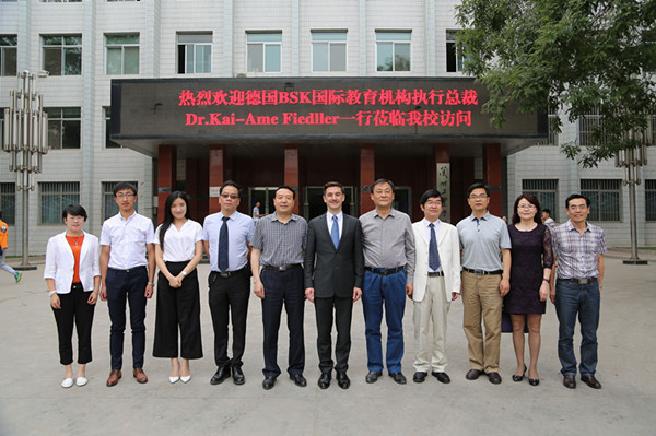 6月17日上午,德国BSK国际教育机构执行总裁凯尔·费德勒(Kai-Arne Fiedler)博士在BSK驻华代表、中国事务专员陈刚先生,青海师范大学教授、BSK高级顾问阿春林先生,BSK驻华办公室秘书范飞女士的陪同下来我校访问。校长王华栋、副校长冯彪与凯尔·费德勒博士举行了友好、坦诚的会谈。省联合国教科文组织协会会长助理杜永军先生、协会国际部副主任陶小花女士参加了会谈。学校办公室、宣传部、教务处、科技处、外国语学院及对外交流合作处等处室负责人参加了座谈会。
