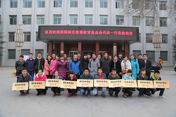 12月26日,美国胡氏慈善教育基金会代表余亚佳女士、田元先生一行来我校访问。学校在第二会议室举行2014年美国胡氏慈善教育基金发放仪式。副校长冯彪出席发放仪式,宣传部、学生处、对外交流合作处、机电工程学院、汽车工程学院等部门负责人和部分辅导员及受助学生代表参加了座谈。