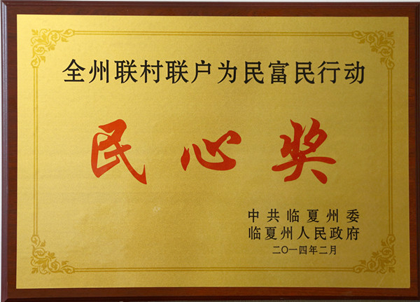 近日,临夏州委、州人民政府授予我校“临夏州联村联户为民富民行动民心奖”。(供稿、摄影/双联办公室)