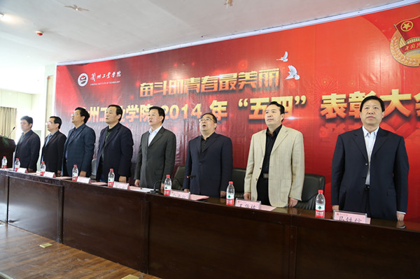 4月29日下午,八楼会议中心团旗飘扬、歌声阵阵,学校在这里隆重举行“五四”运动95周年纪念大会暨2014年“五四”表彰大会。党委书记高永新,副校长冯彪、俞子泓、王华栋、魏军,纪委书记廉志端,校长助理马铁信,总会计师王多兴出席大会,俞子泓主持大会。各学院党总支书记,学生处、招就处、保卫处、公寓中心、团委负责人及获奖学生代表近500人参加大会。