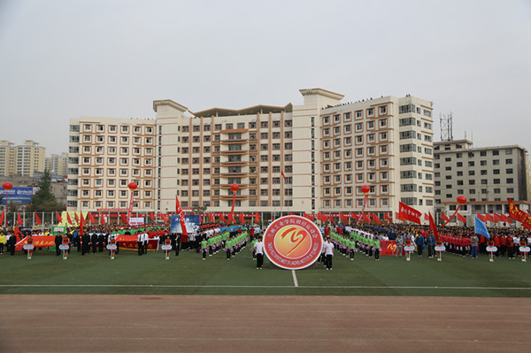 5月15日 ,学校2014年田径运动会在南校区田径场隆重举行,校领导高永新、陈彪、何春海、冯彪、王华栋、魏军、廉志端,校长助理李贵山、马铁信,总会计师王多兴出席开幕式,副校长魏军主持开幕式。近万名师生参加开幕式。