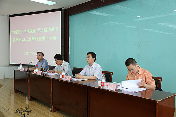 省委第二十五督导组组长王家勋作了重要讲话。王家勋说,刚才听了7个单位的交流发言,了解了学校的教育实践活动的开展情况。7个单位的交流发言很好,有高度、有深度,也有理性思考。王家勋说,他完全同意高永新书记代表党委作的讲话,兰州工业学院的党的群众路线教育实践活动呈现三个特点:一是主题明确;二是方法步骤符合学校实际;三是开局良好,进展顺利。近期兰州工业学院开展的教育实践活动集中周掀起了一个新的高潮,为衔接下一步工作打下了良好的基础。王家勋指出,在前一阶段征求意见过程中,大家是真心的、真诚的,但还需要再深化、再梳理、再认识,这样才能有利于今后找准问题、促进工作。希望学校通过扎实有效的工作,取得让广大师生员工满意的成效。